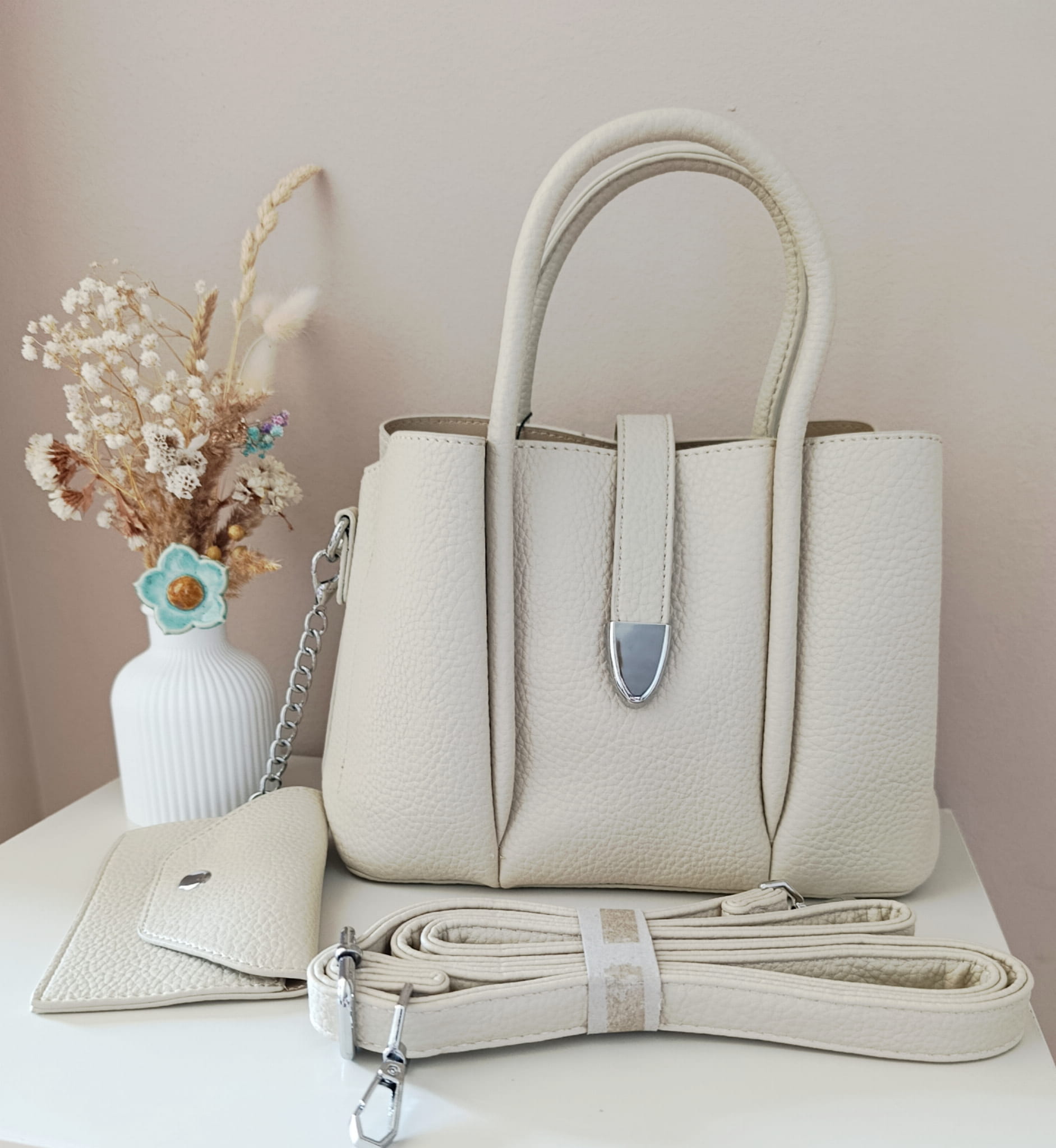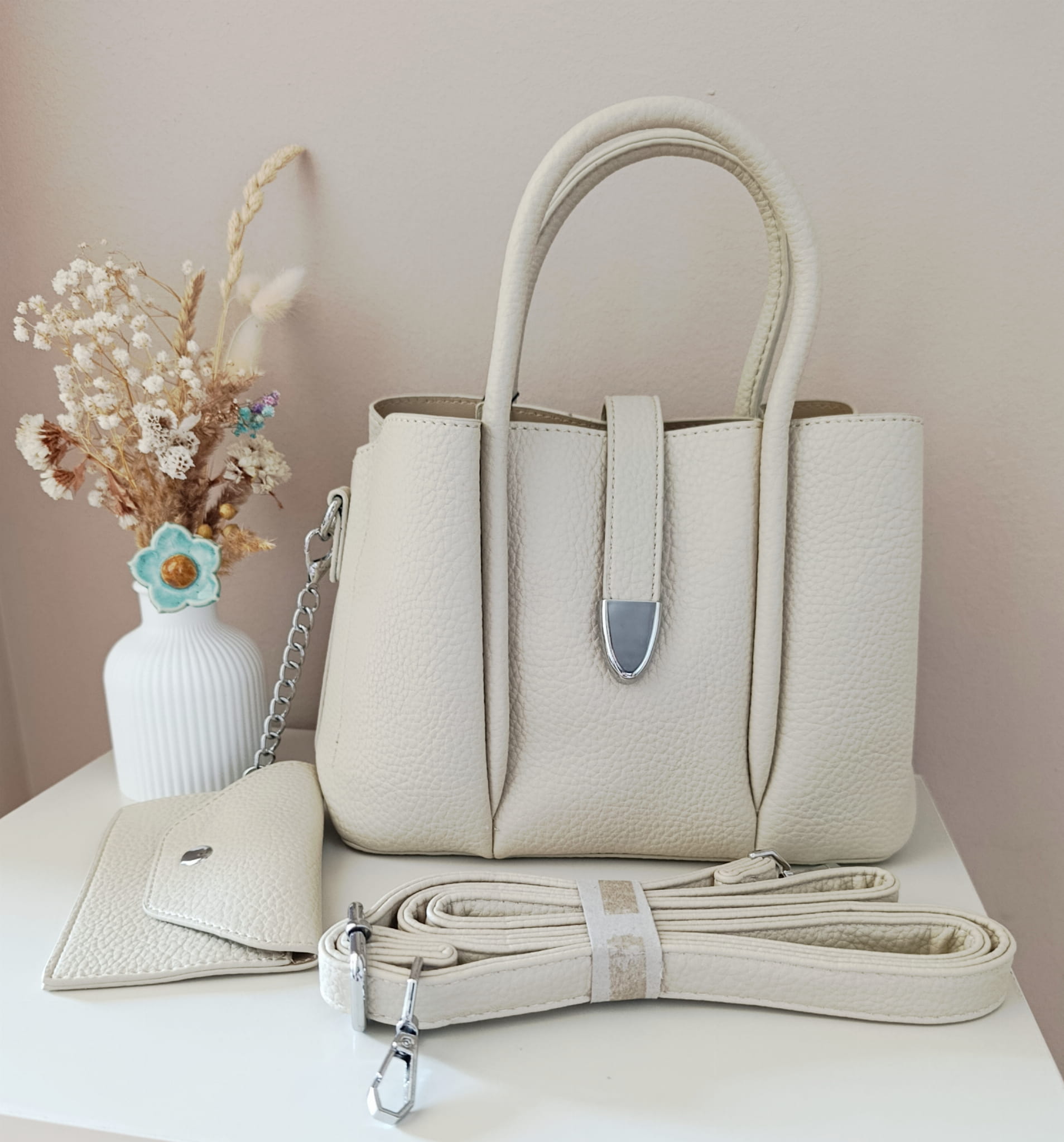 - zapięcie: piękna, solidna klamra z metalowym okuciem w kolorze srebrnym - subtelny akcent luksusu