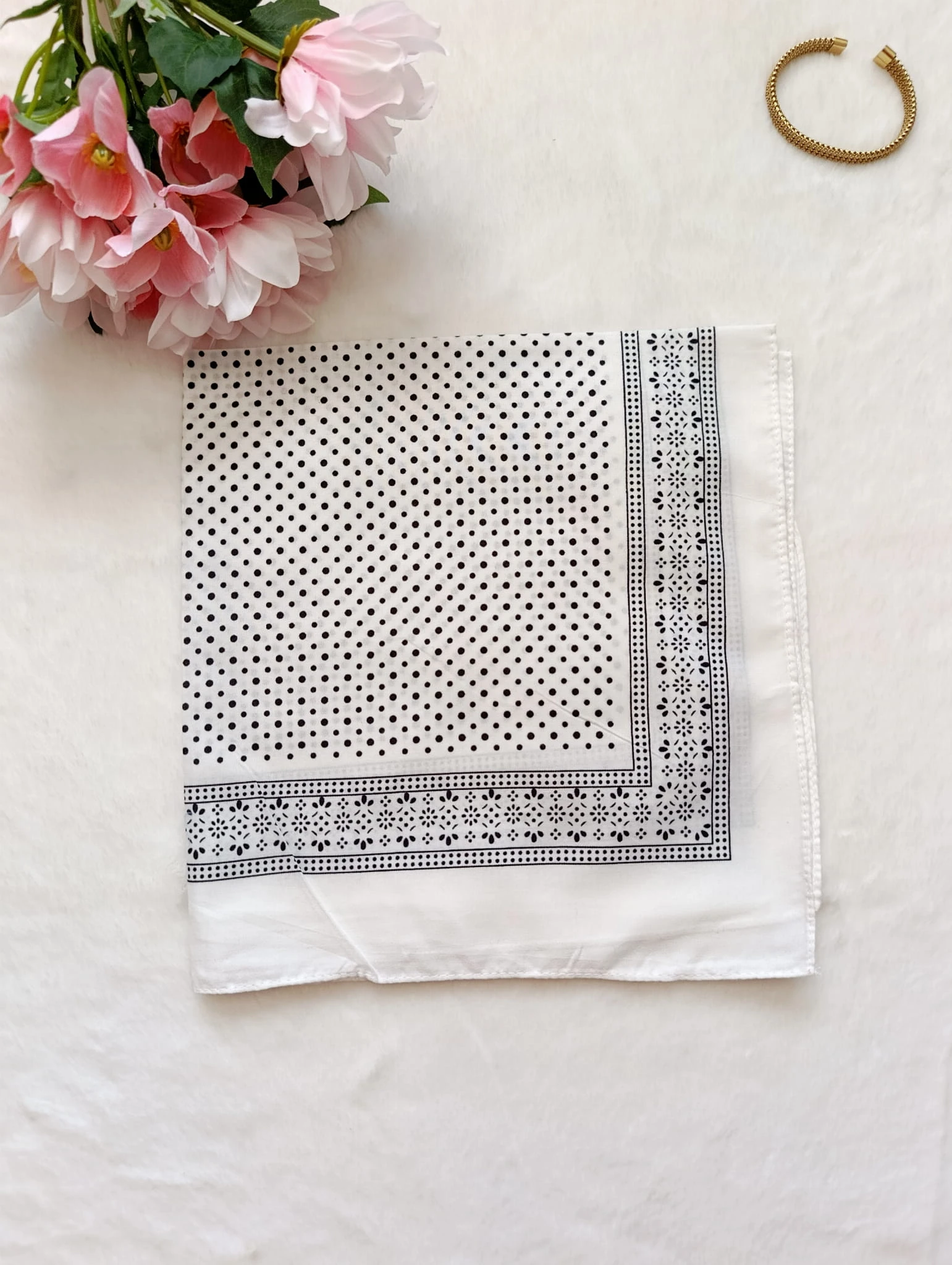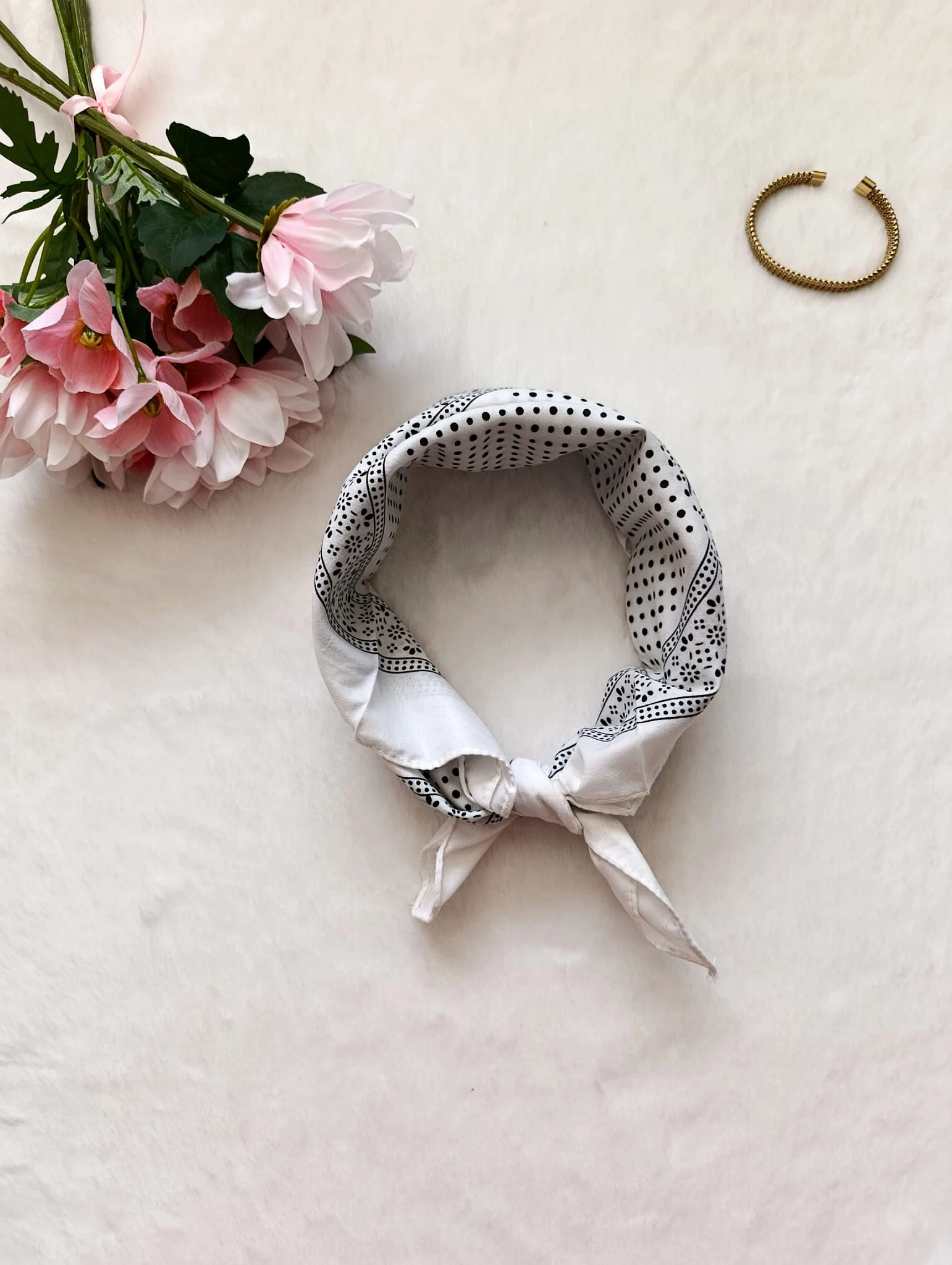 Stylowa apaszka damska to uniwersalny dodatek, który doda charakteru każdej stylizacji. Klasyczna biel w print z groszkami sprawia, że chustka jest ponadczasowa i łatwo dopasować ją zarówno do eleganckich, jak i codziennych outfitów.