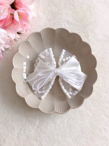 Centralnym elementem dekoracyjnym są ozdobne perełki, pięknie podkreślające komunijny charakter spinki. Dzięki starannemu wykonaniu ozdoba doskonale prezentuje się we włosach i stanowi idealne dopełnienie stylizacji na Pierwszą Komunię Świętą.