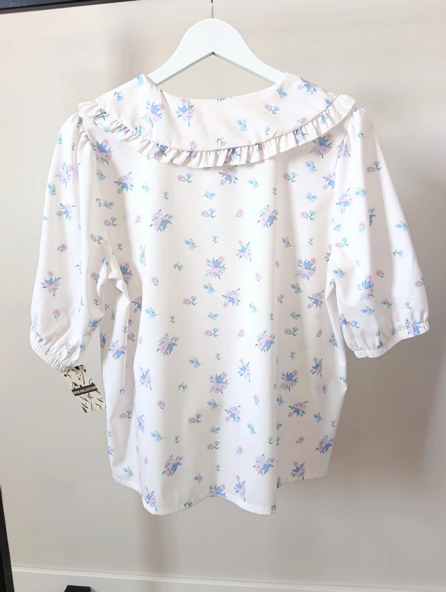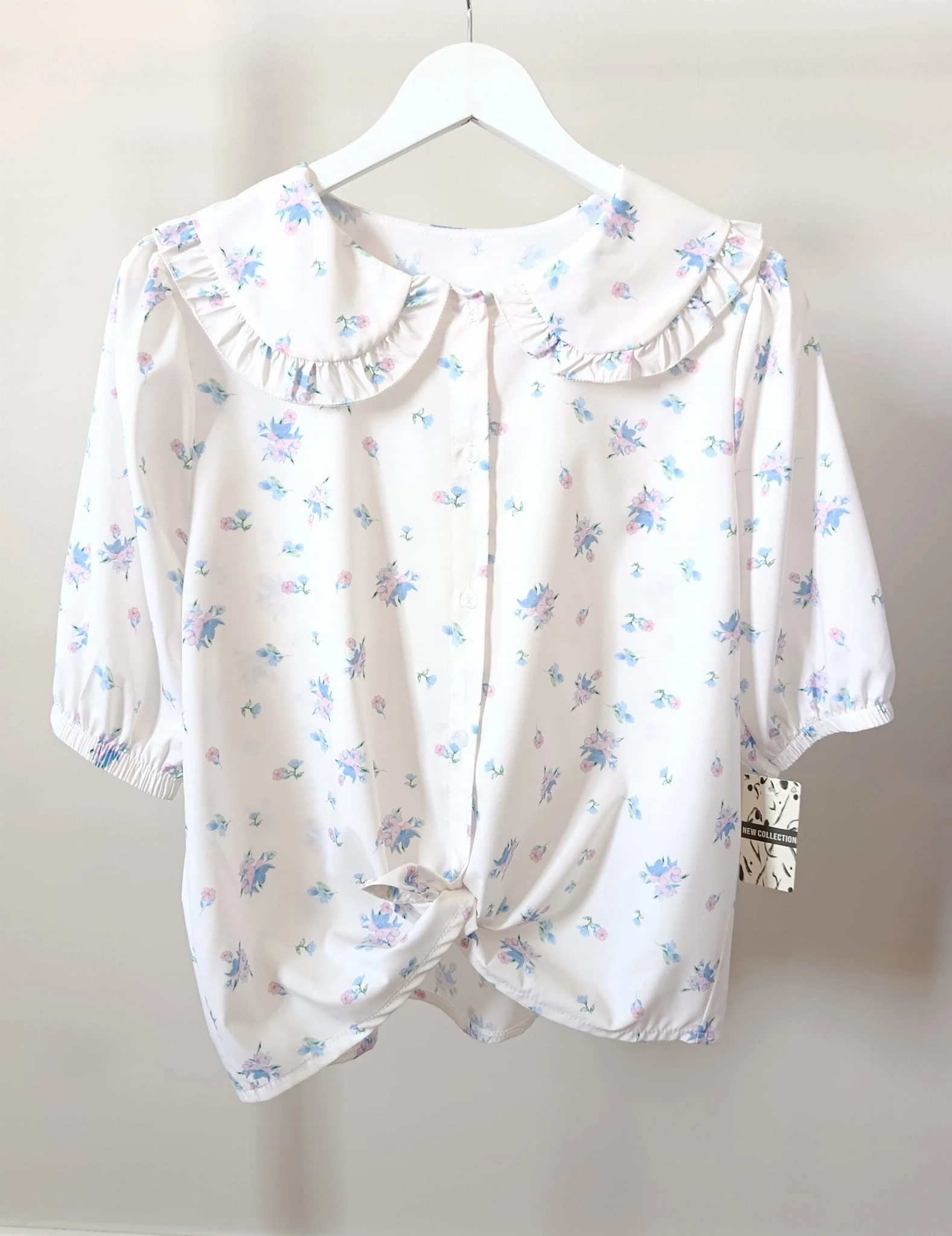Biała koszula damska w błękitne kwiatki