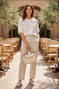 Model posiada krótkie, bufiaste rękawki, które pięknie układają się na ramionach, podkreślając kobiecą sylwetkę. Idealna zarówno do codziennych stylizacji, jak i bardziej eleganckich zestawów - świetnie komponuje się ze spódnicą, jak i spodniami.