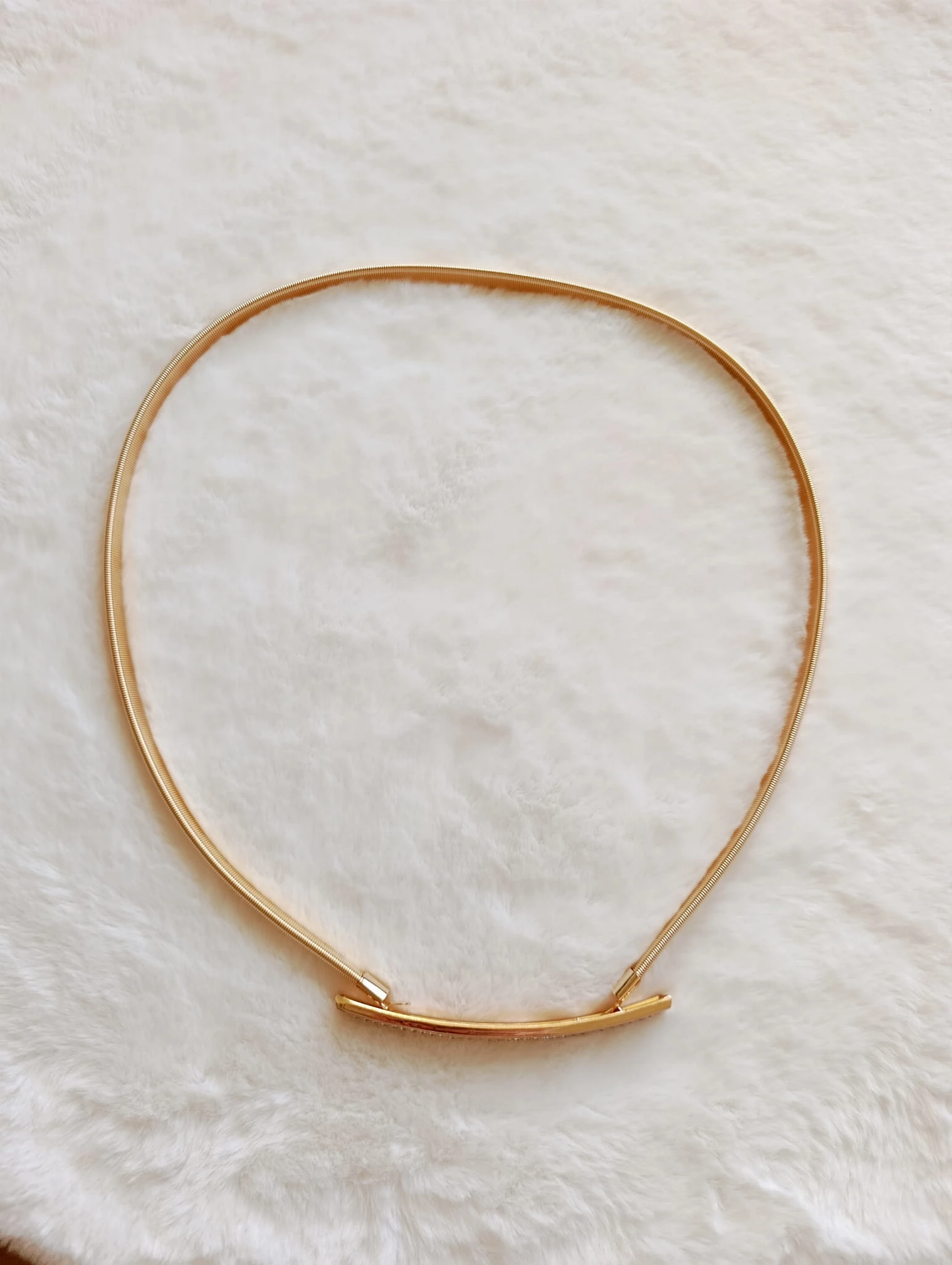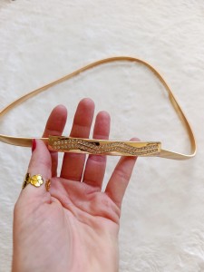 Prezentujemy elegancki pasek biżuteryjny typu żmijka w modnym złotym kolorze. Pasek wykonany z elastycznego materiału, dzięki czemu doskonale dopasowuje się do sylwetki i zapewnia komfort noszenia przez cały dzień.