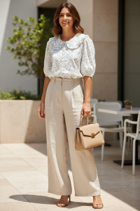 Model posiada krótkie, bufiaste rękawki, które pięknie układają się na ramionach, podkreślając kobiecą sylwetkę. Idealna zarówno do codziennych stylizacji, jak i bardziej eleganckich zestawów - świetnie komponuje się ze spódnicą, jak i spodniami.