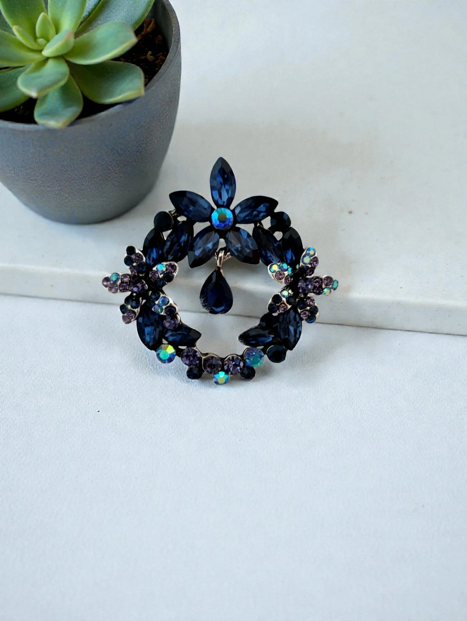 Elegancka broszka o wyjątkowym, kobiecym charakterze, która przyciąga wzrok głębokim odcieniem granatowych kamieni i subtelnym ruchem wiszącej łezki. To biżuteria, która doda klasy zarówno codziennym stylizacjom, jak i wieczorowym kreacjom.