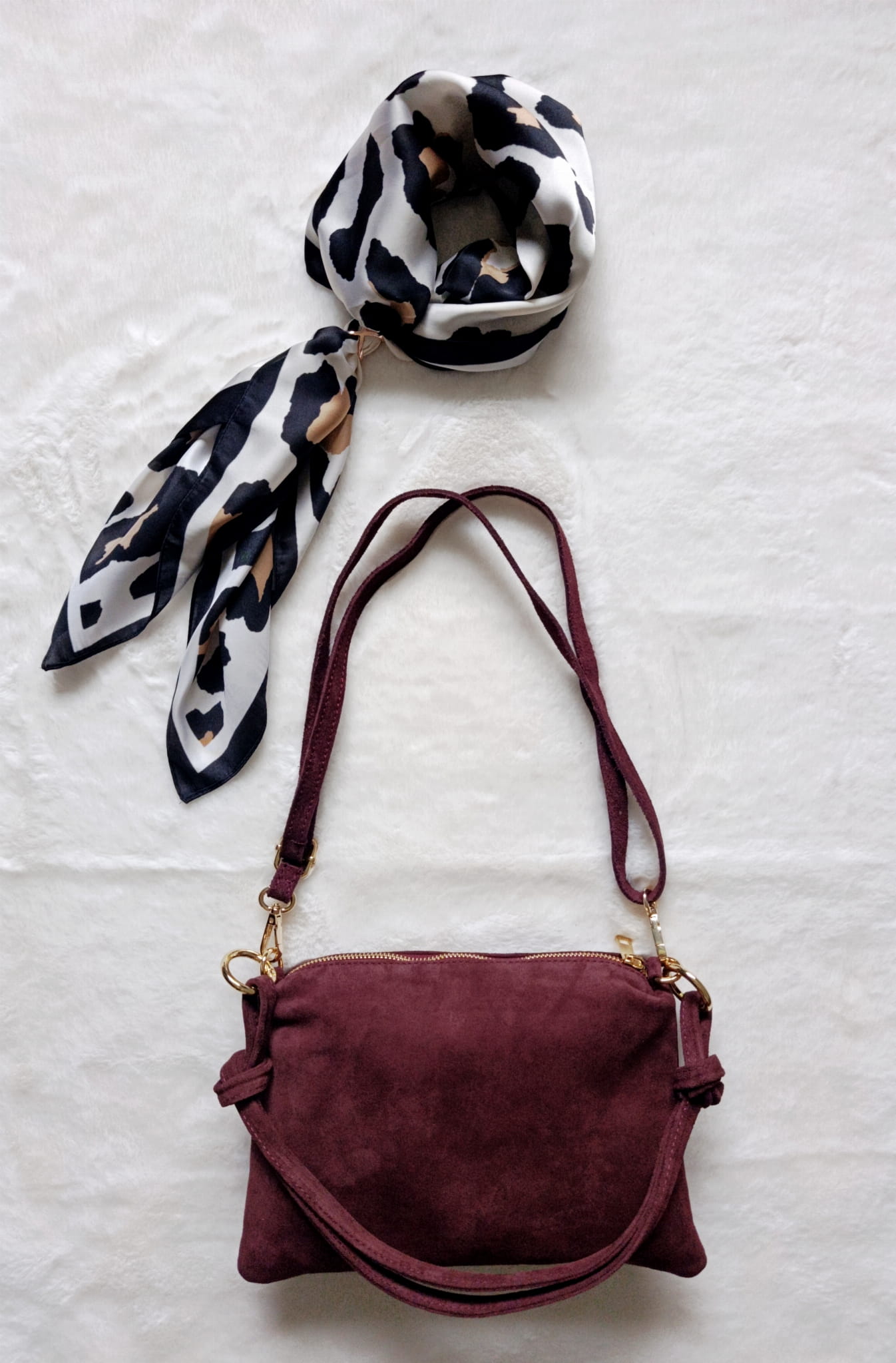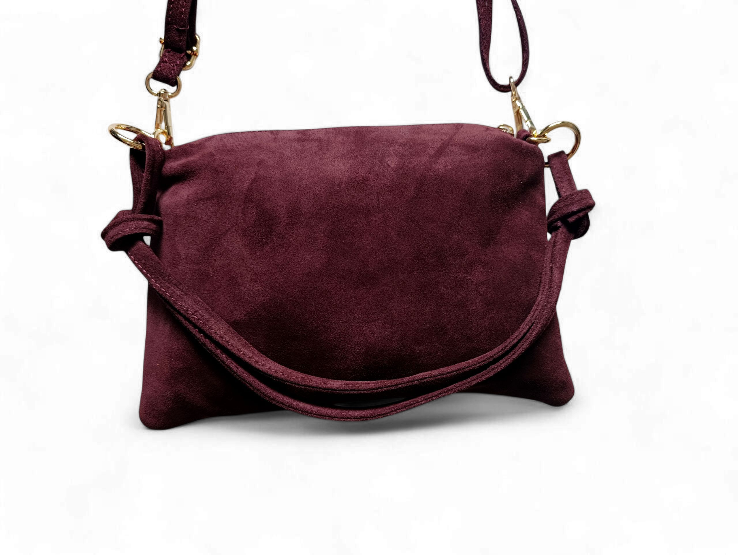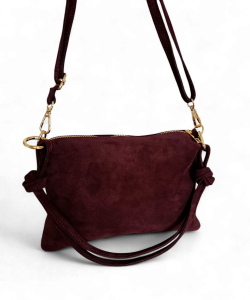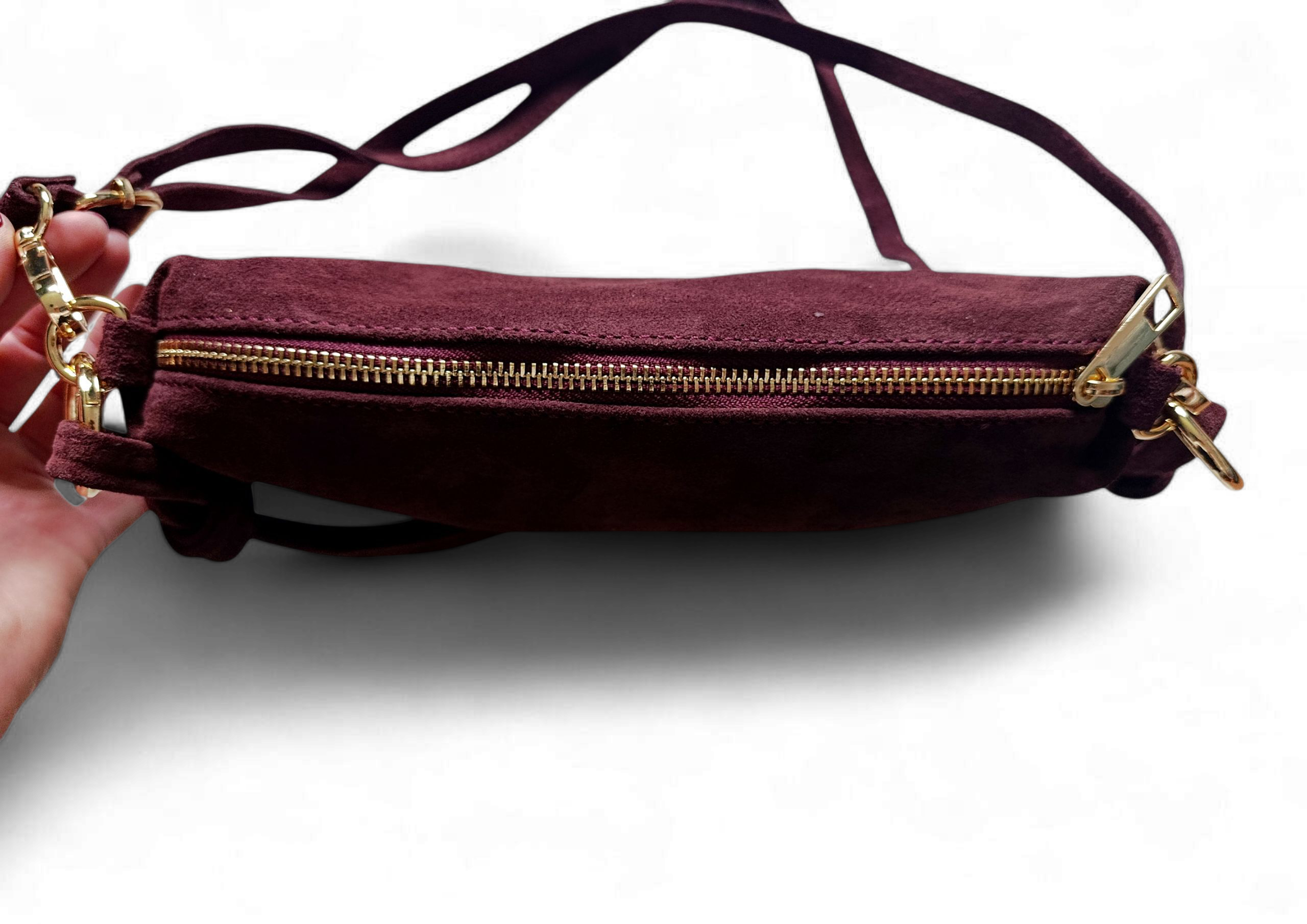 Burgundowa torebka zamszowa ze skóry naturalnej