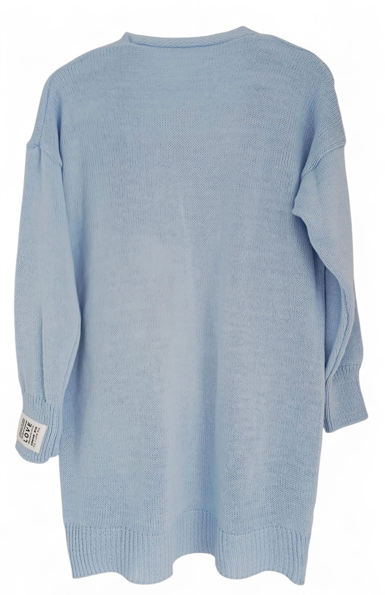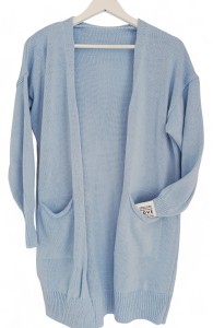 Ciepły, długi kardigan błękitny do kolan oversize