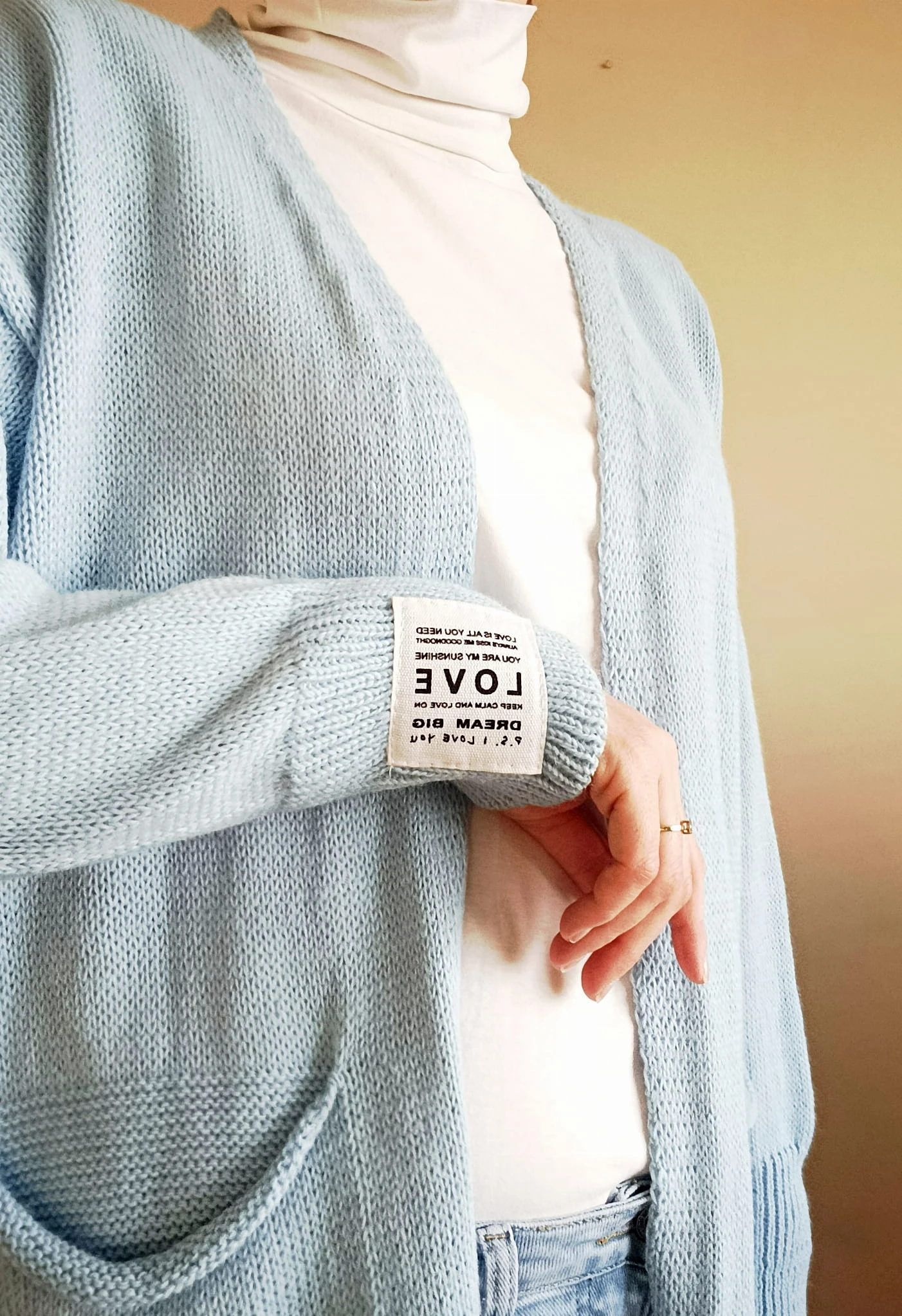 Model bez zapinania, o luźnym kroju oversize, doskonale układa się na sylwetce i zapewnia pełną swobodę ruchów. Kardigan posiada praktyczne kieszenie z przodu oraz ozdobną naszywkę na lewym rękawie, która nadaje mu unikalnego charakteru.