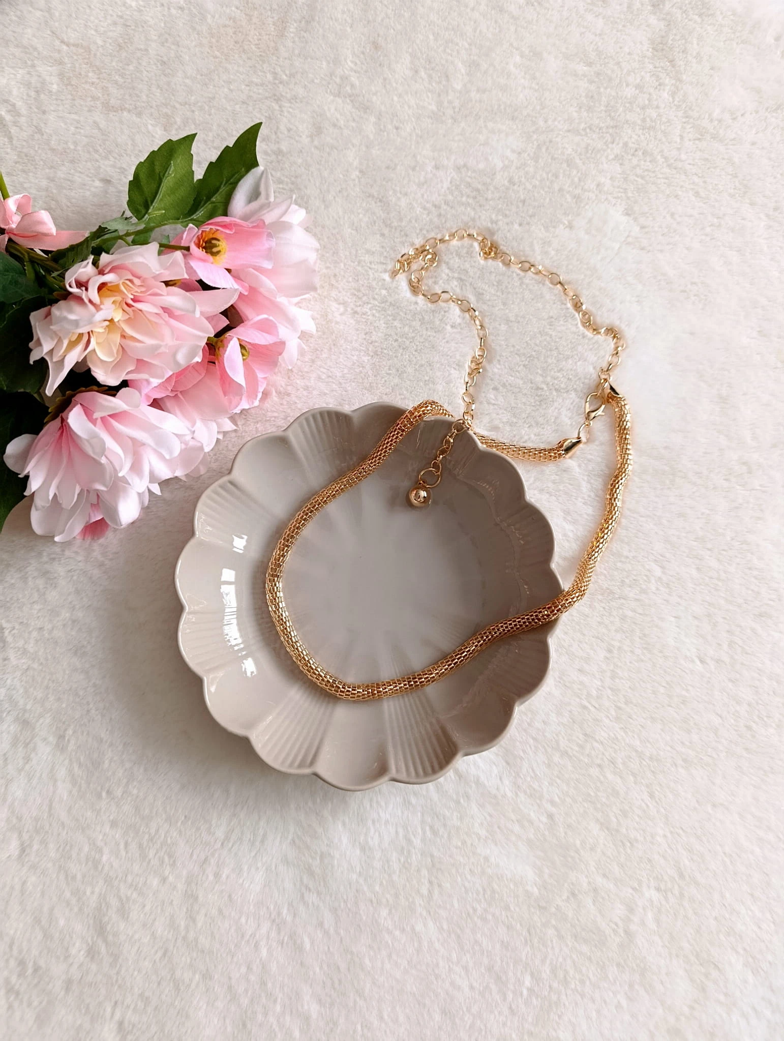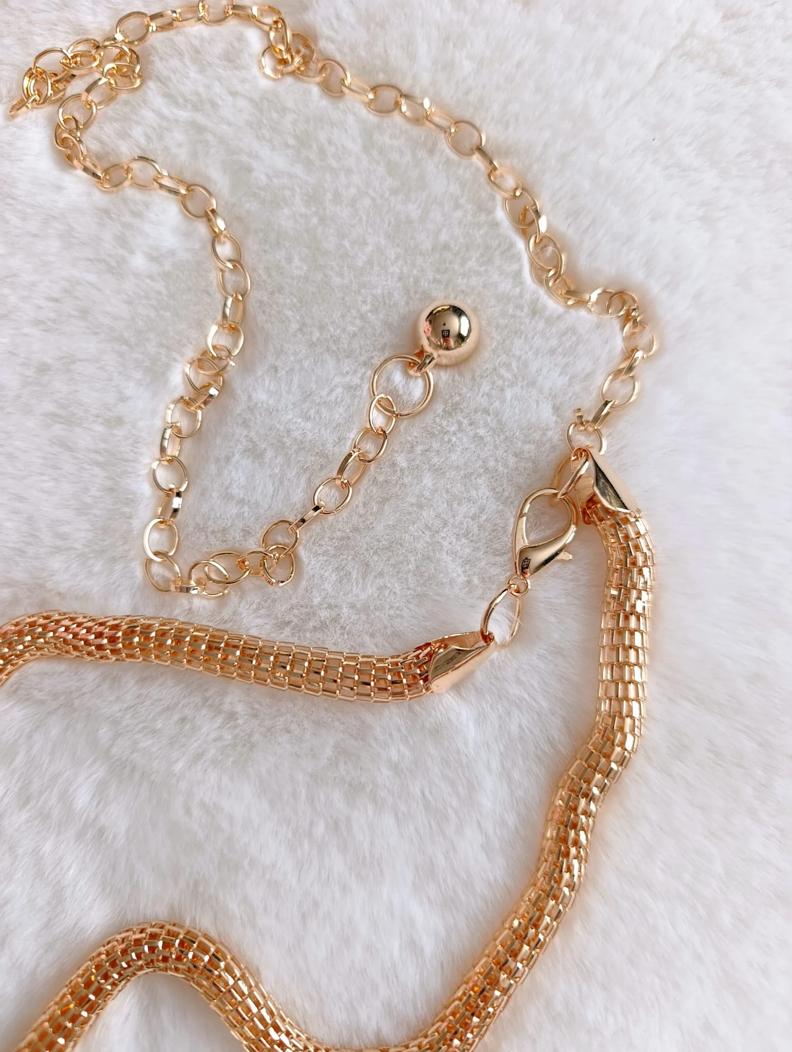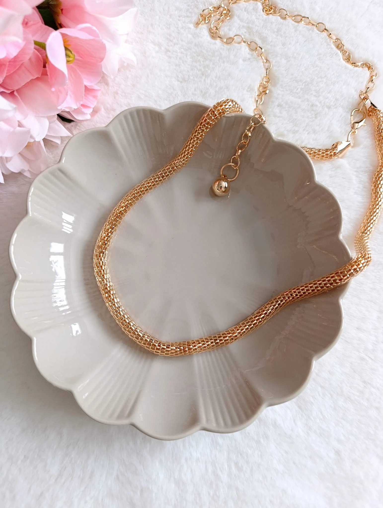 - dekoracja: złota kulka na końcu łańcuszka