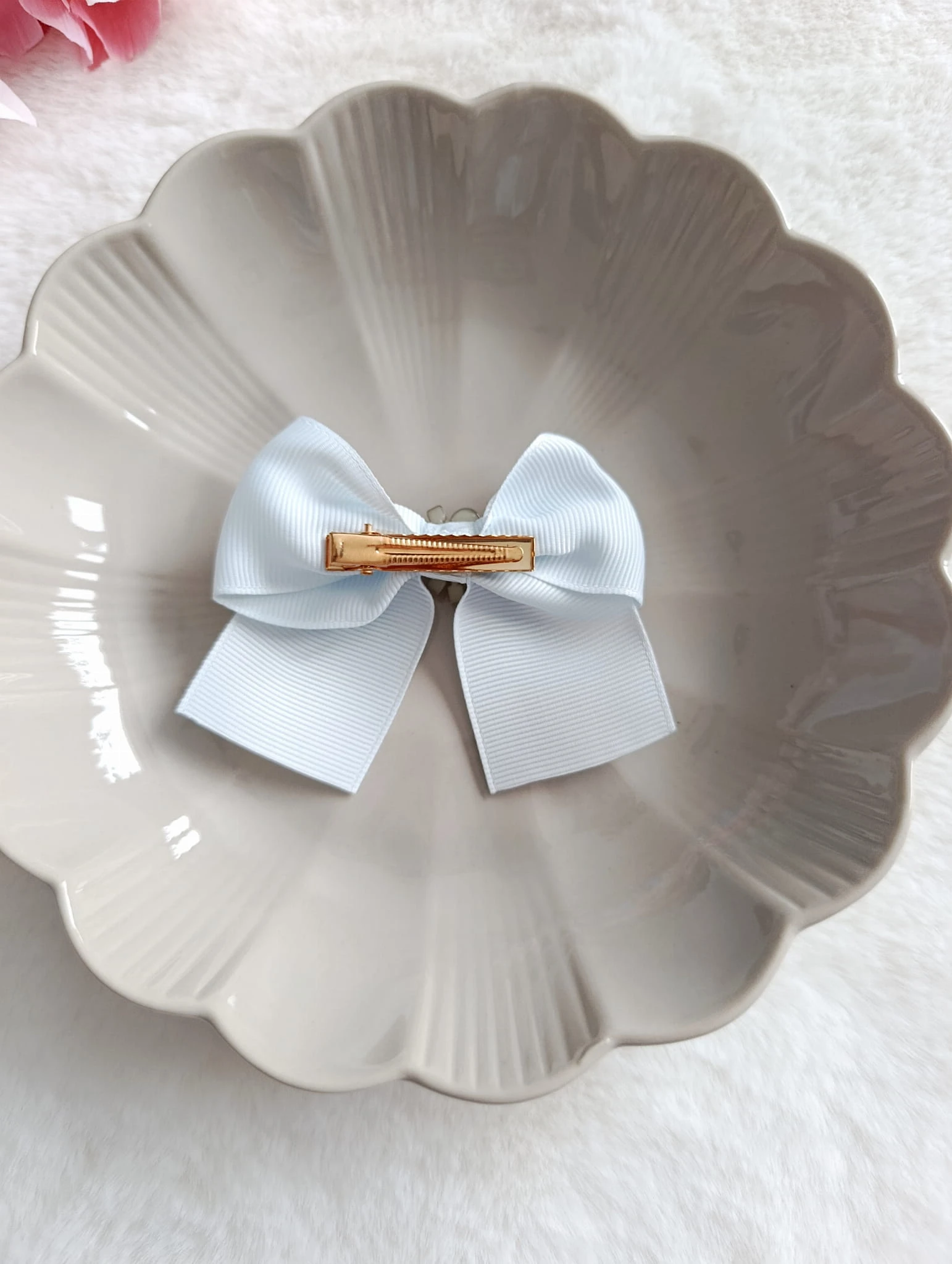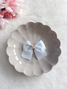 Duża spinka kokarda błękitna z perełkami