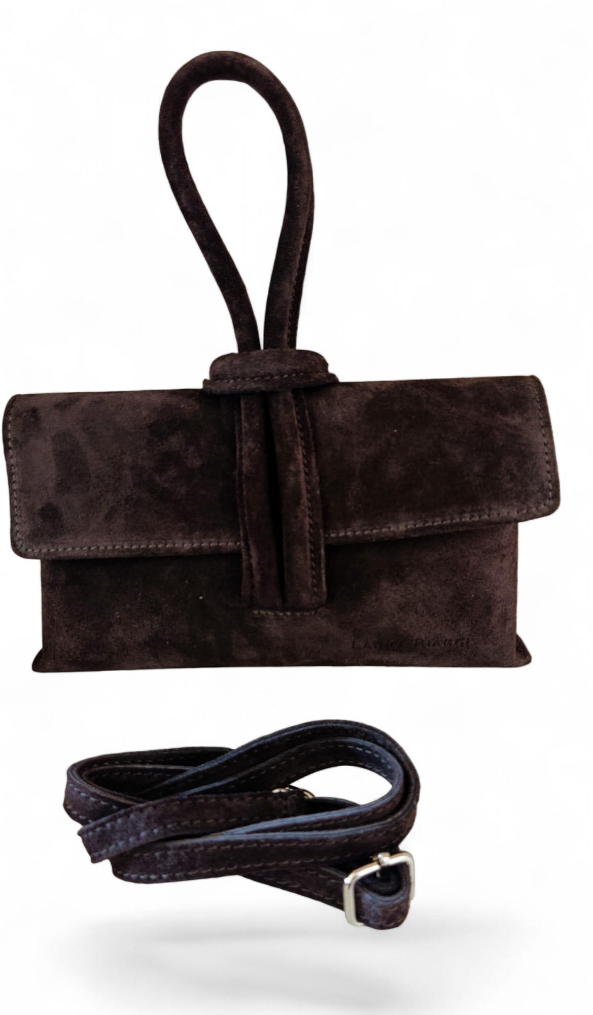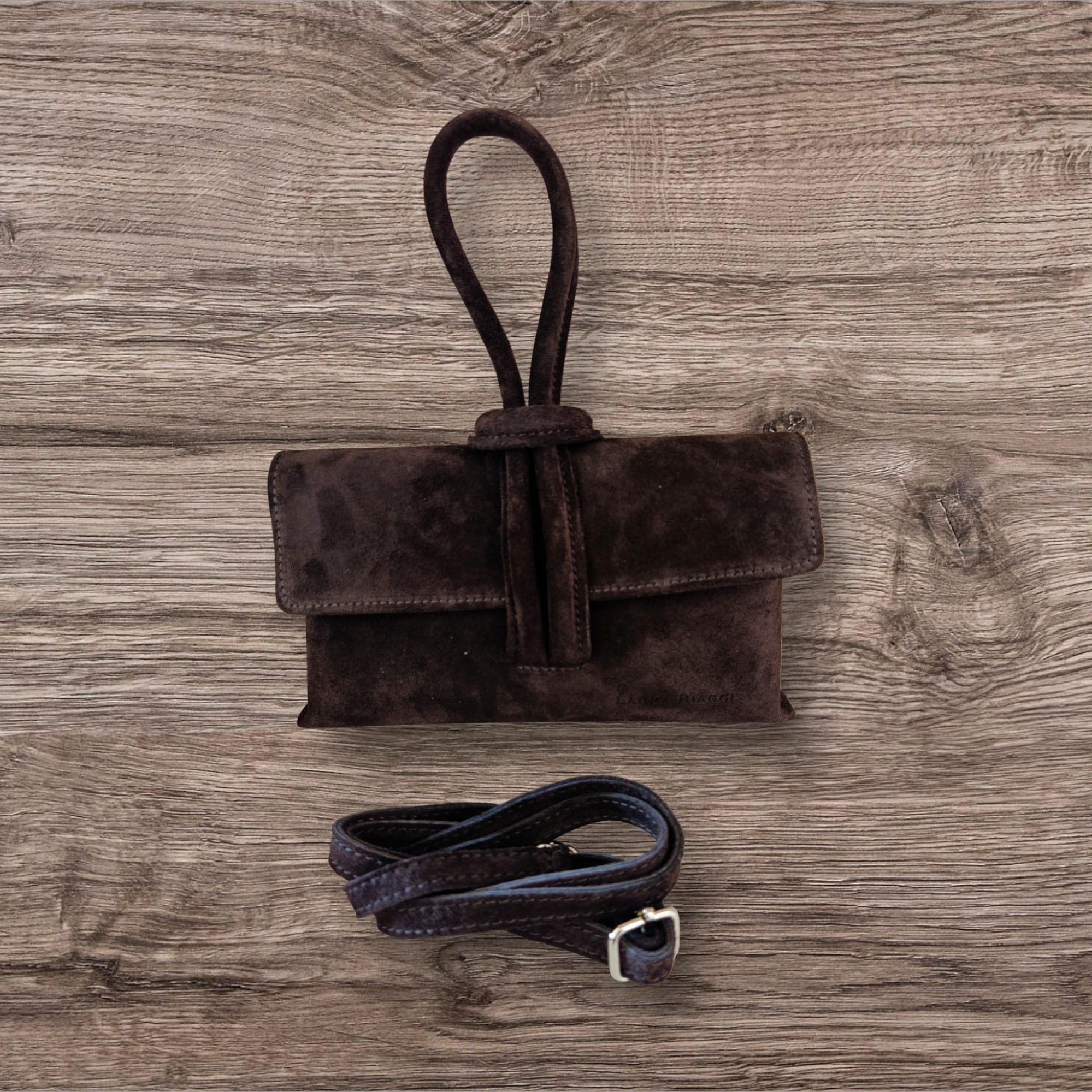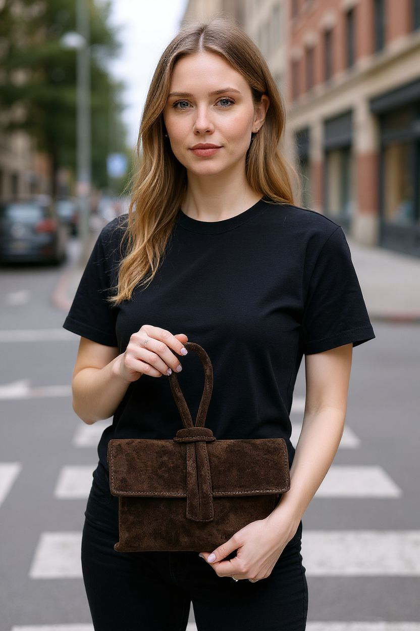 Postaw na ponadczasową klasykę w nowoczesnym wydaniu. Nasza, mała elegancka torebka z naturalnego zamszu w kolorze czekoladowym to kwintesencja stylu, który zachwyca subtelną formą i luksusowym wykończeniem.