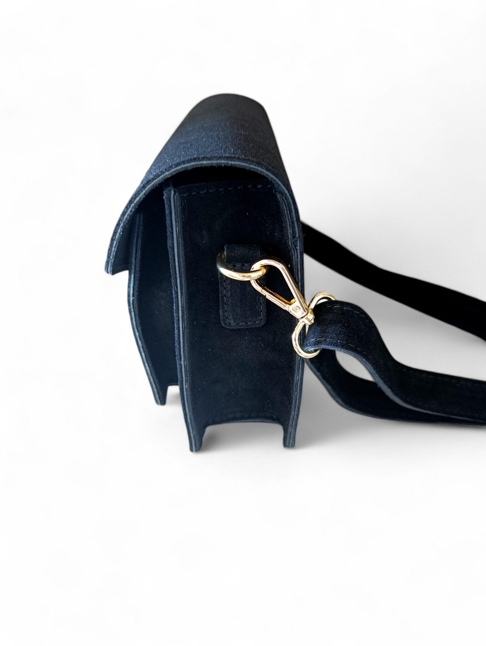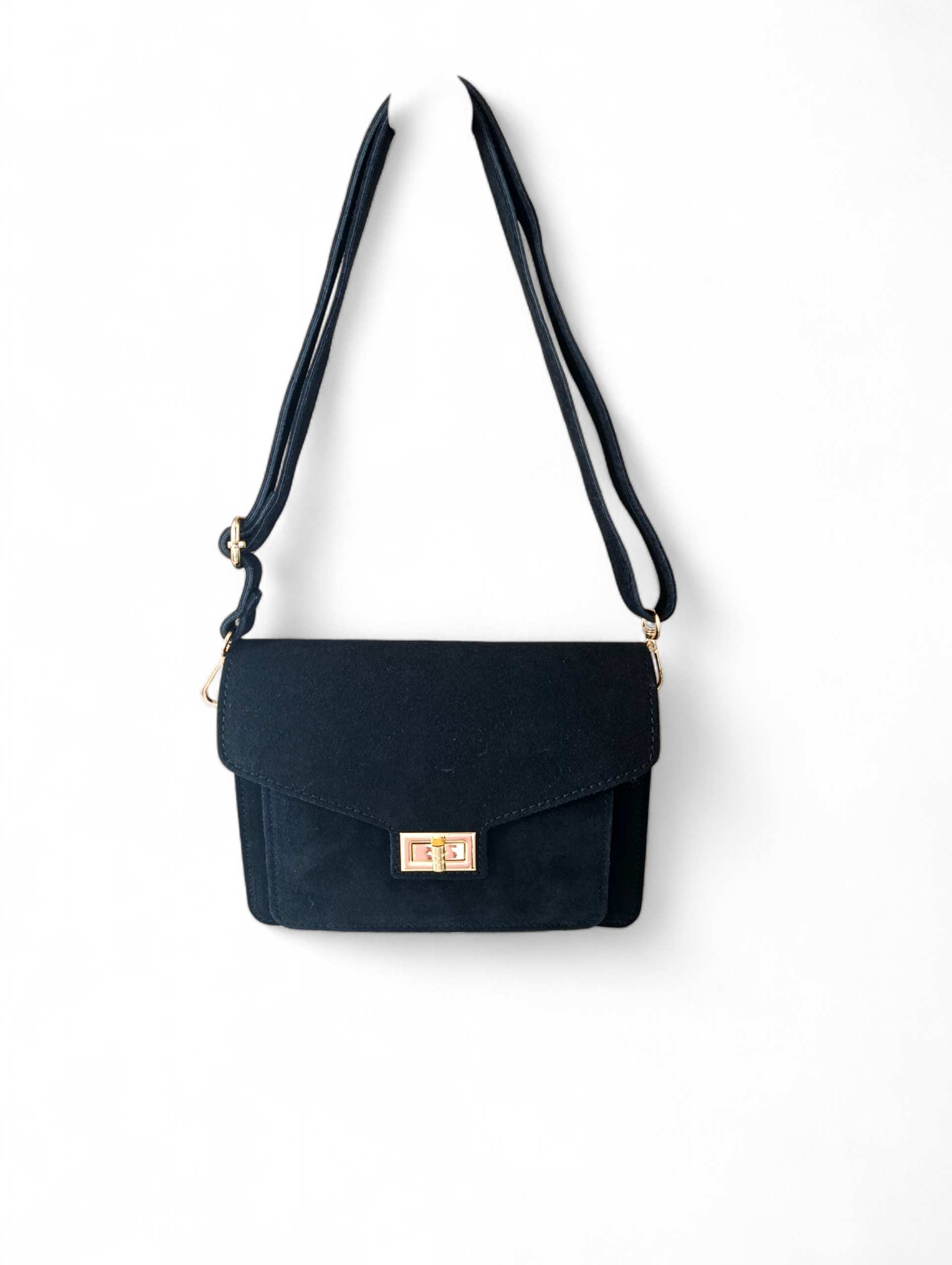 Torebka wykonana z wysokiej jakości skóry naturalnej zamszowej - miękka, przyjemna w dotyku i niezwykle szykowna. Materiał prezentuje się luksusowo i podkreśla elegancki charakter dodatku.