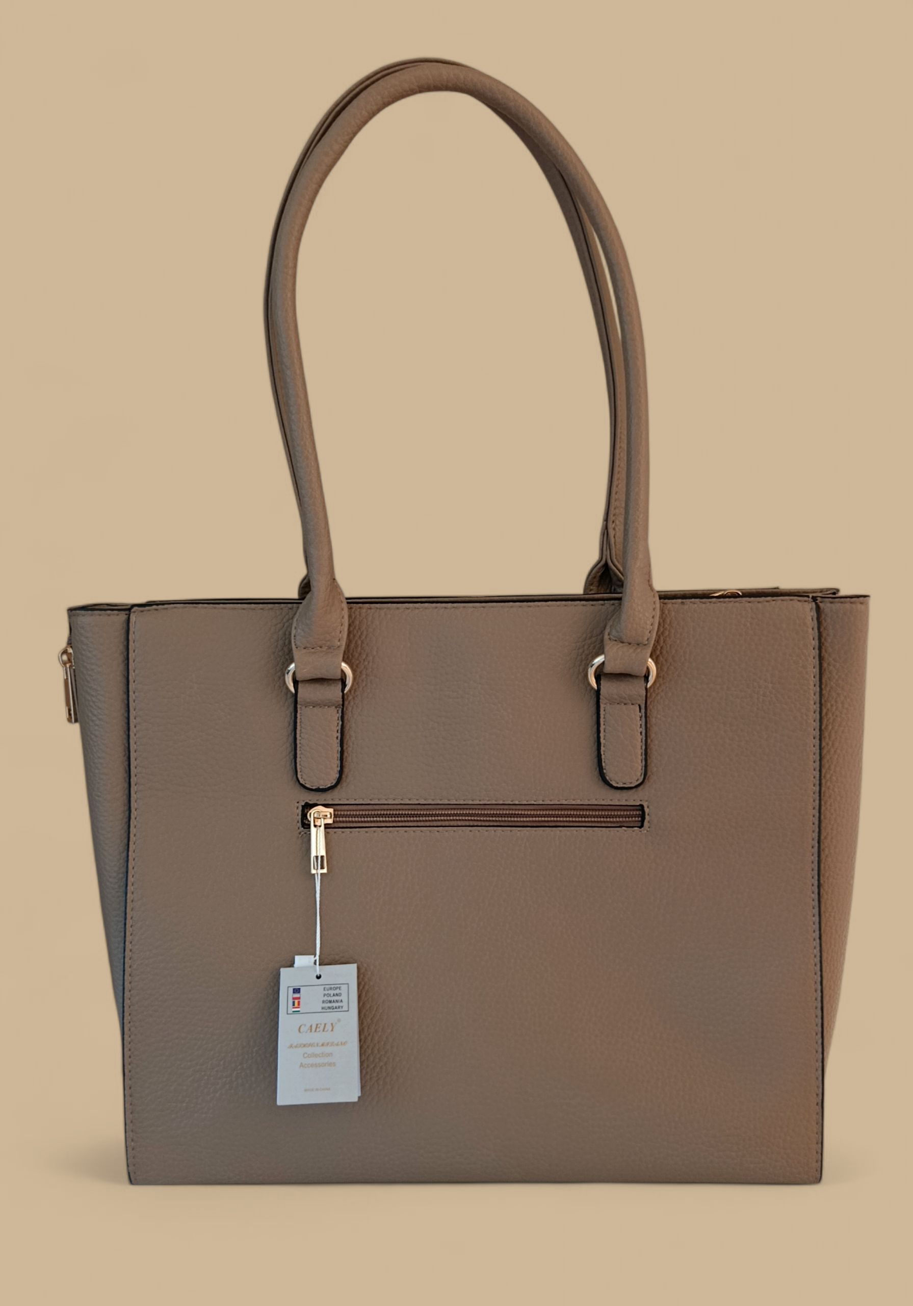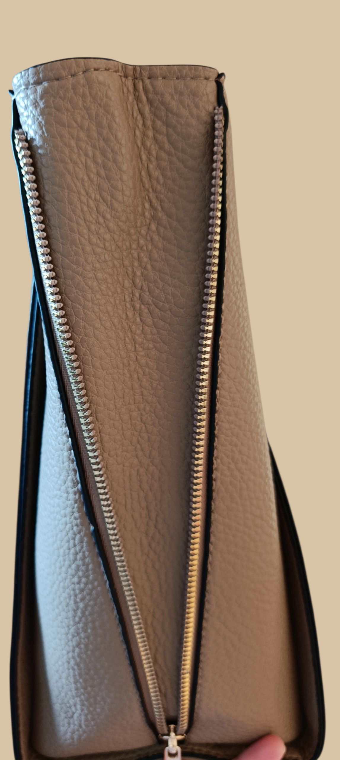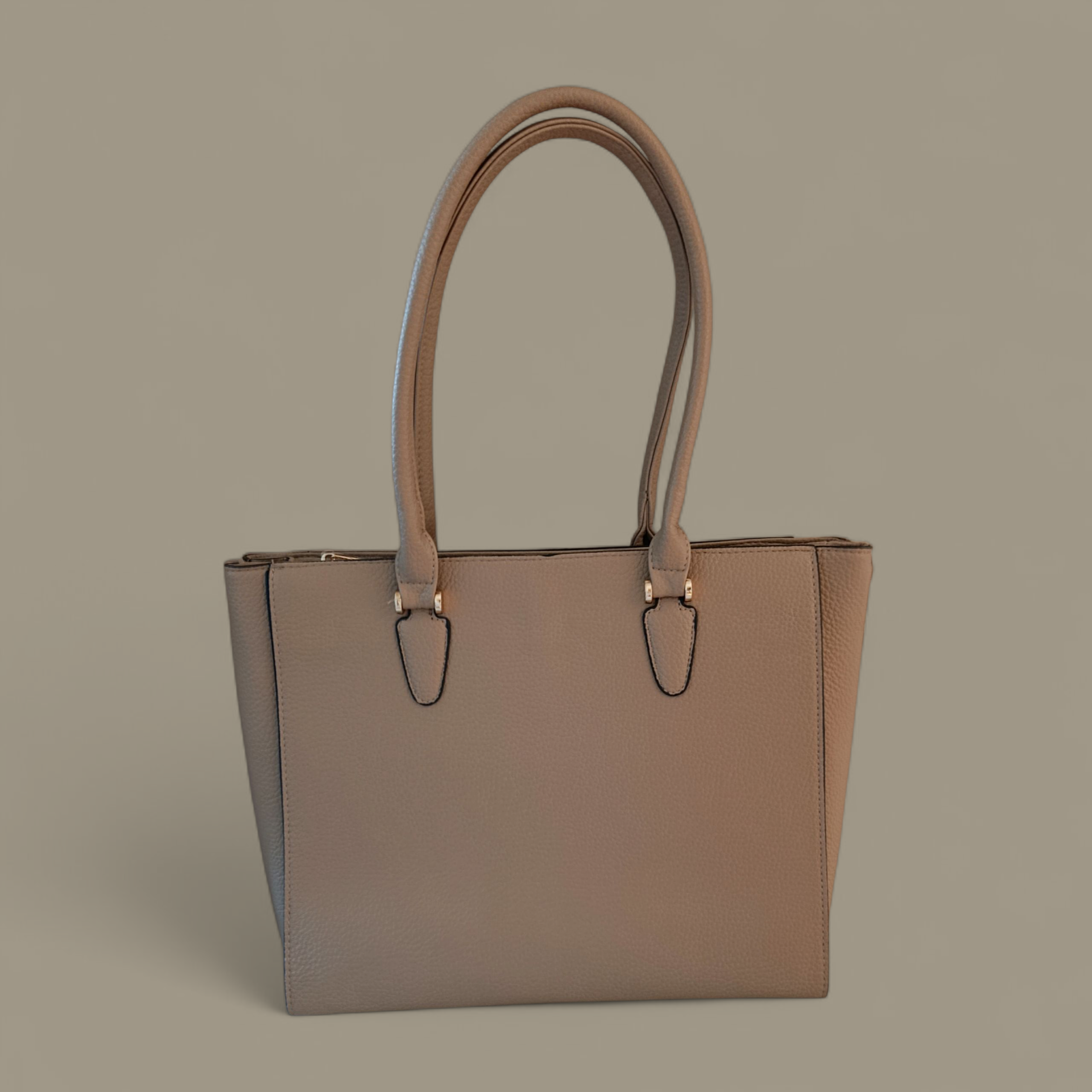 Klasyczna shopperka beżowa LAURA ze złotymi zamkami