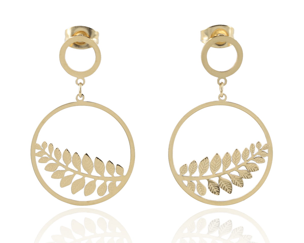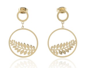 Kolczyki wiszące - LIŚĆ w ringu złote