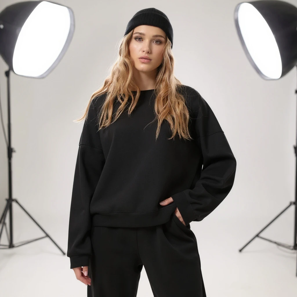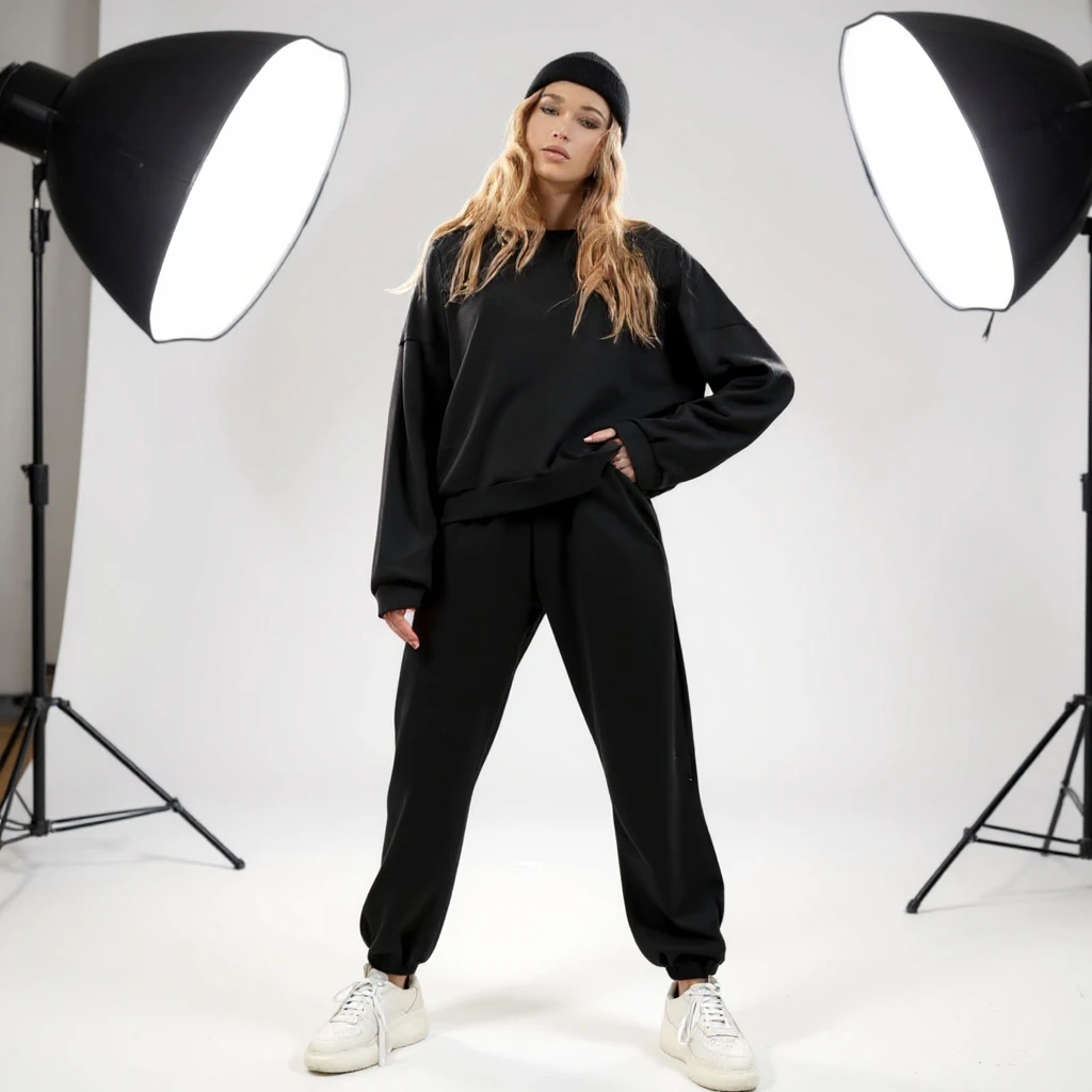 Postaw na wygodę w najlepszym wydaniu. Ten czarny dres damski to idealne połączenie swobody, minimalistycznego stylu i funkcjonalności. Wykonany z miękkiej, oddychającej bawełny o cieńszej gramaturze, świetnie sprawdzi się w cieplejsze dni - wiosną, chłodniejsze letnie wieczory czy podczas aktywnego dnia poza domem.