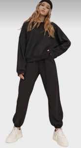 Bluza o luźnym kroju zapewnia pełną swobodę ruchów i modny, nonszalancki look. Możesz nosić ją zarówno do kompletu, jak i osobno - do jeansów czy legginsów. Spodnie posiadają wygodne nogawki zakończone ściągaczami, które dobrze układają się na sylwetce i nadają całości sportowego charakteru.