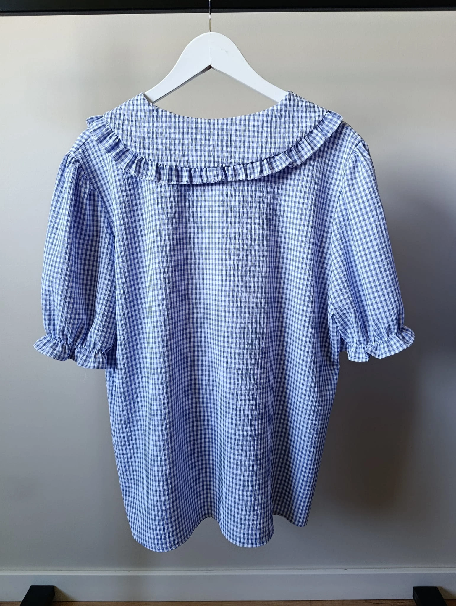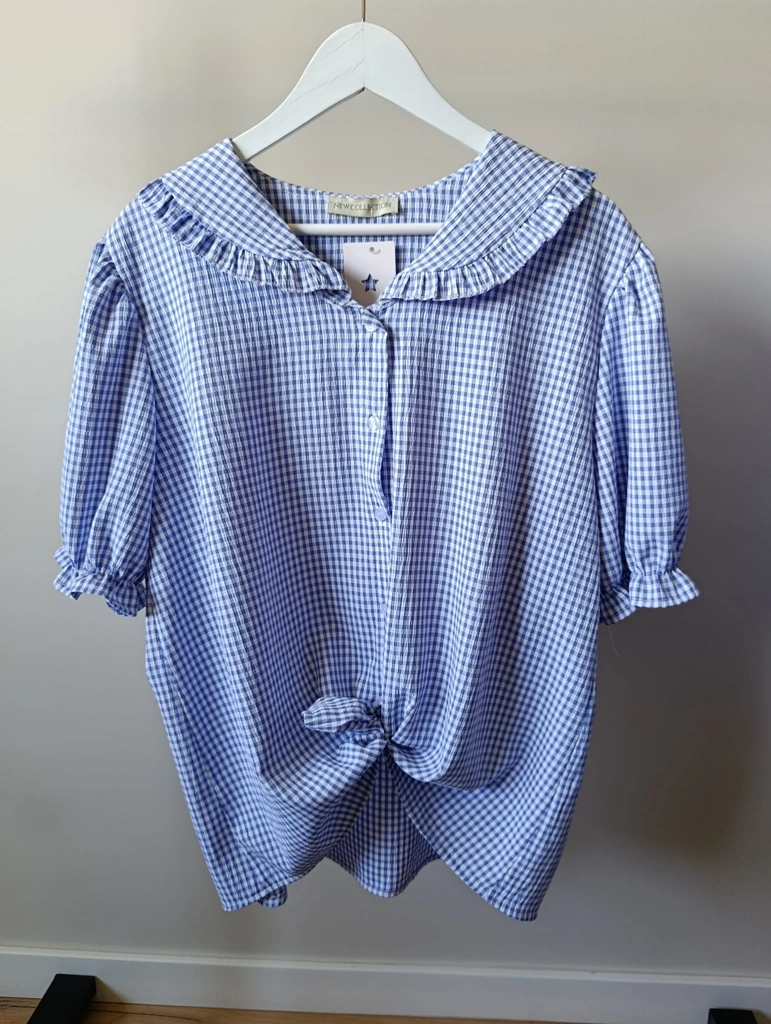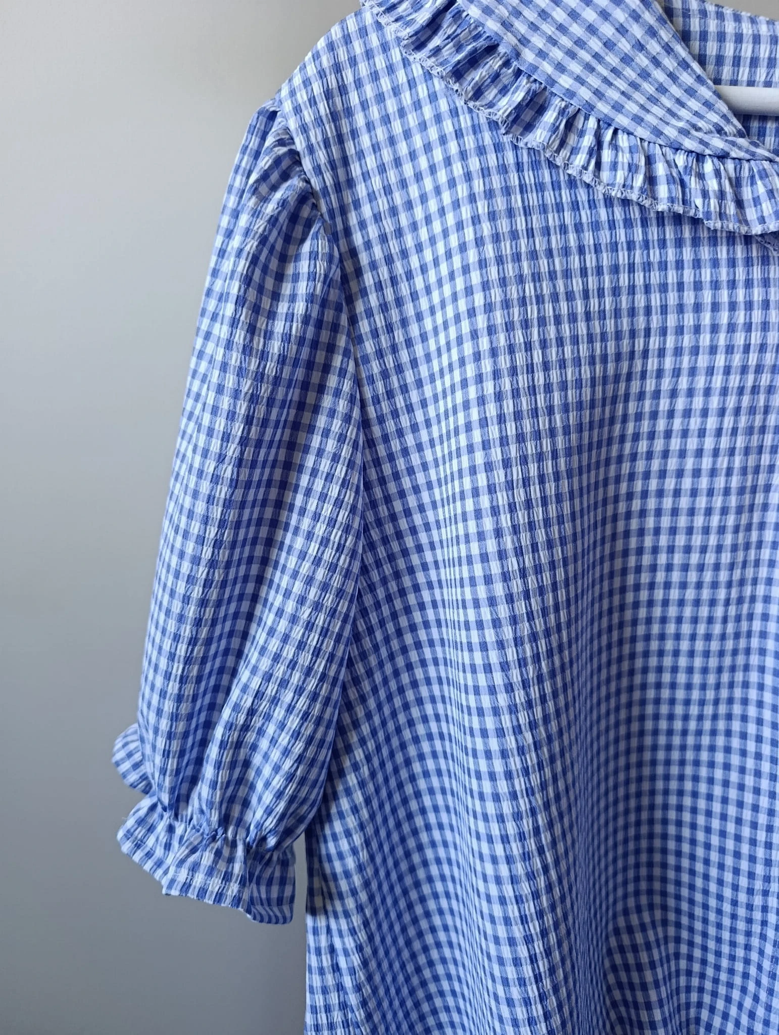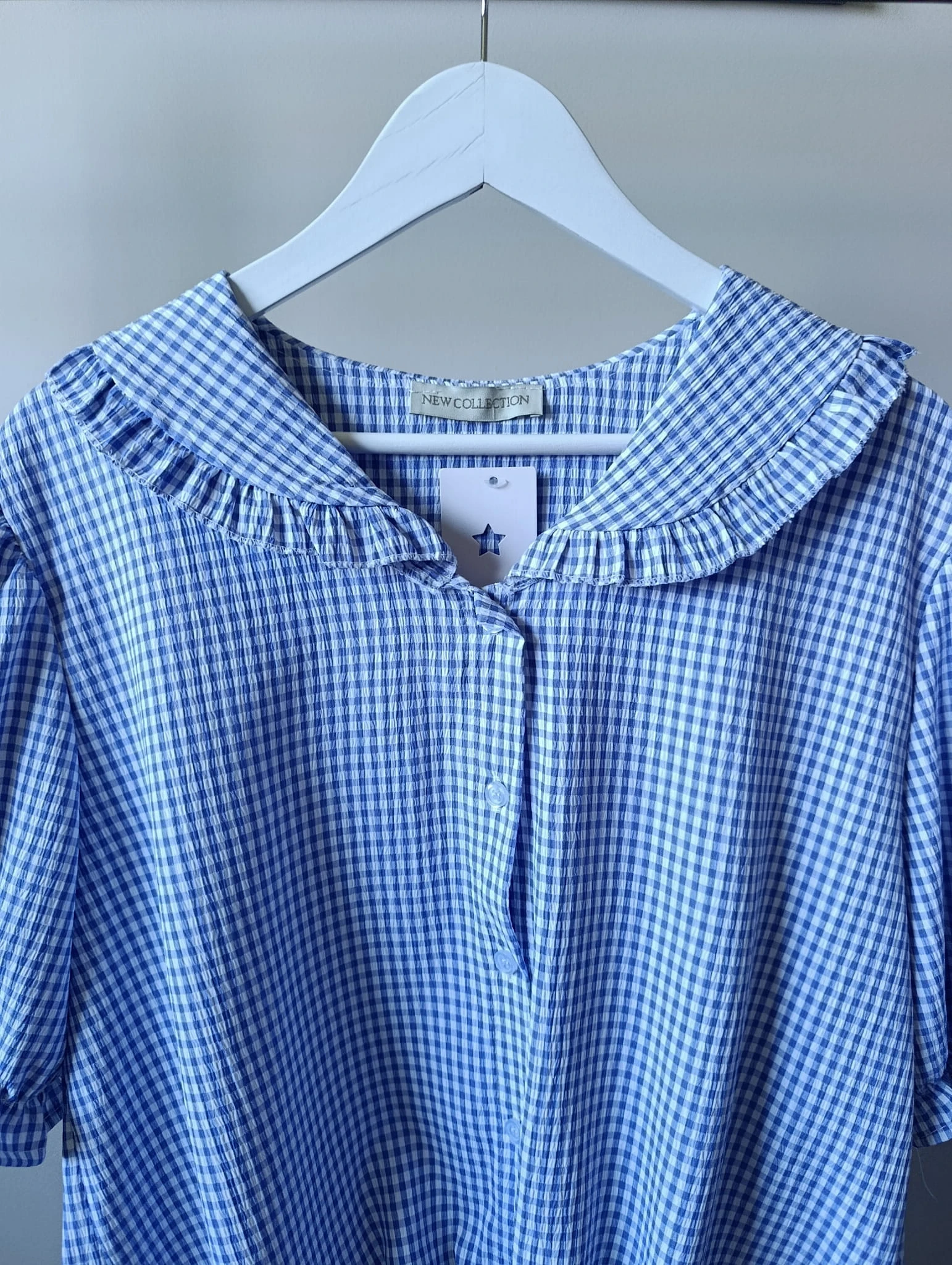 Koszula damska w subtelną niebieską kratkę to połączenie kobiecego uroku i ponadczasowej elegancji. Wykonana z lekkiej, przyjemnej w dotyku wiskozy, zapewnia komfort noszenia przez cały dzień, a delikatnie marszczony materiał dodaje jej wyjątkowej struktury i charakteru.