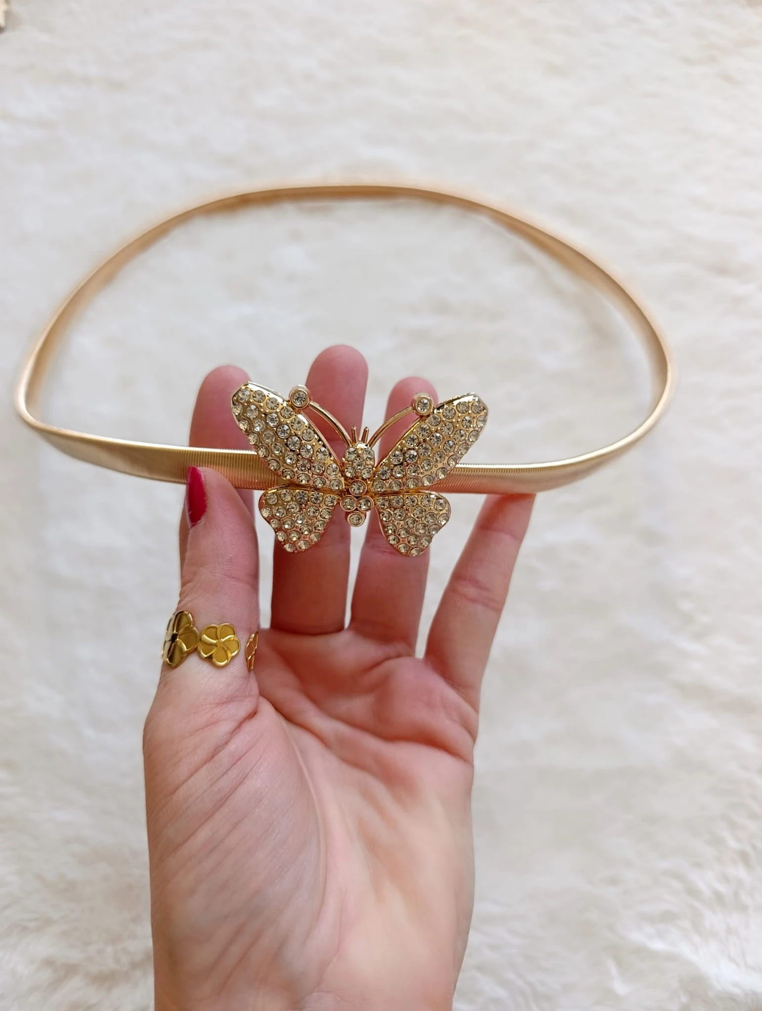 Pasek damski złoty MOTYL z cyrkoniami