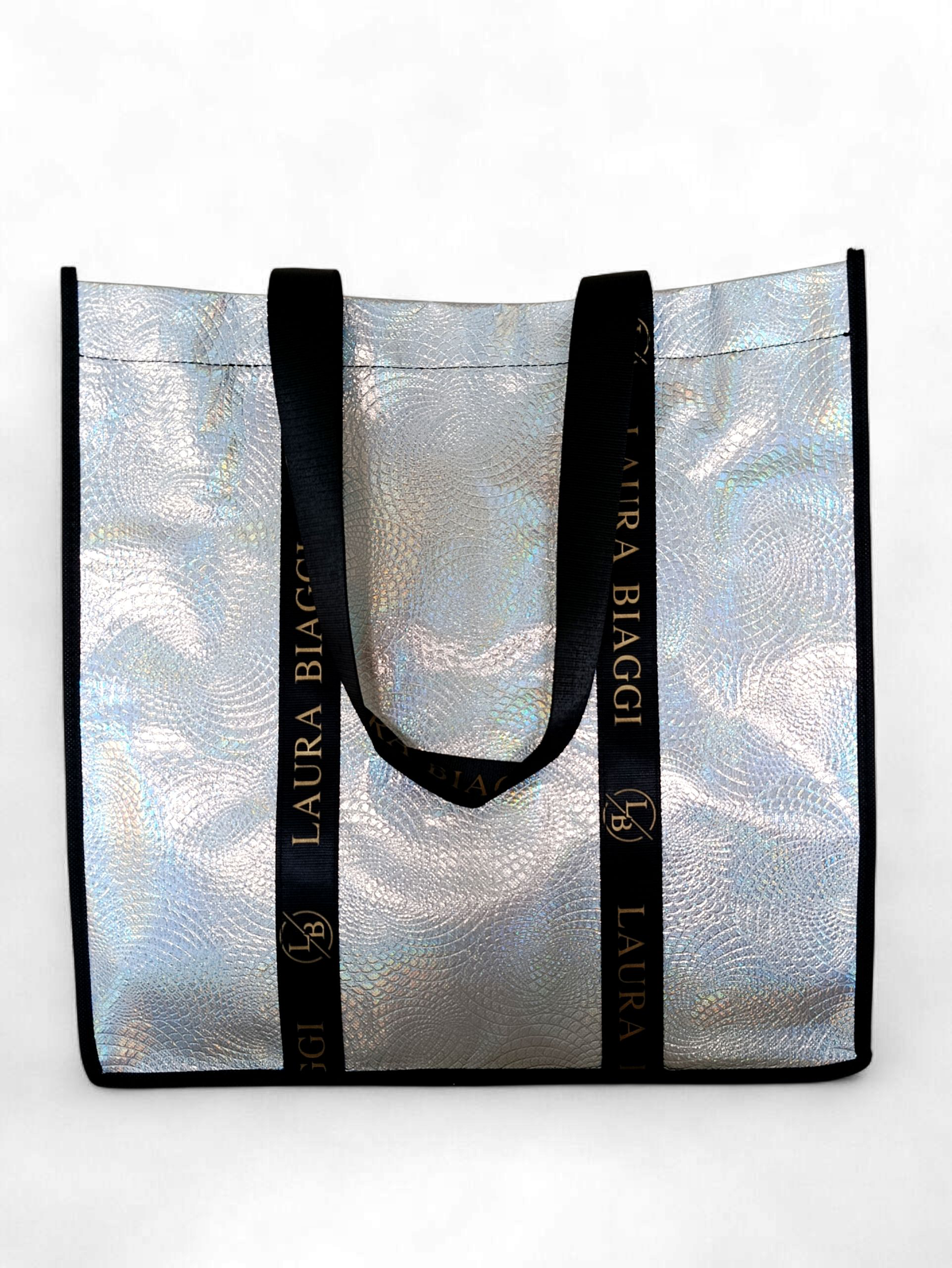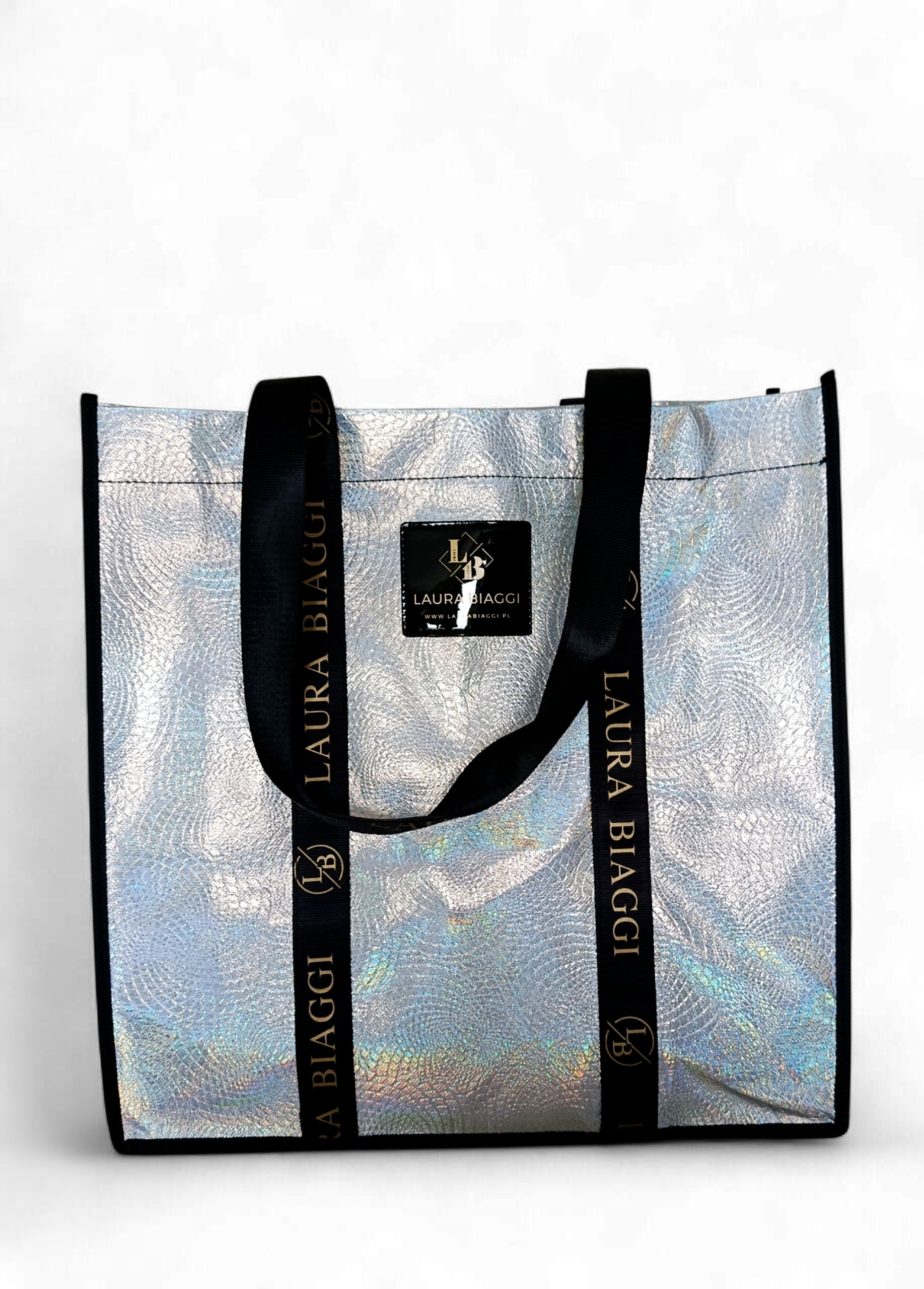 Pojemna torba holograficzna srebrna Laura Biaggi