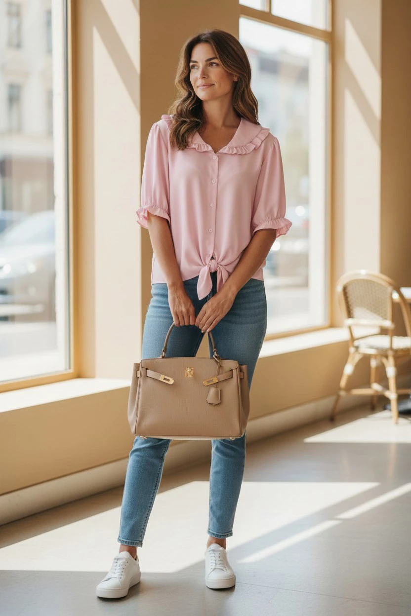 Koszulę można nosić na wiele sposobów - zarówno swobodnie puszczoną, jak i zawiązaną z przodu na modny supełek, co podkreśla talię i nadaje stylizacji lekkości. Idealna propozycja na co dzień i na cieplejsze dni - świetnie sprawdzi się w zestawieniu z jeansami, szortami lub spódnicą.