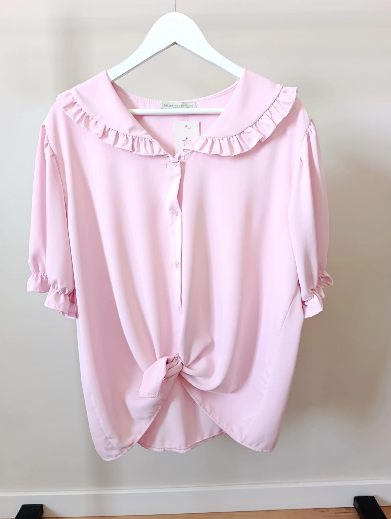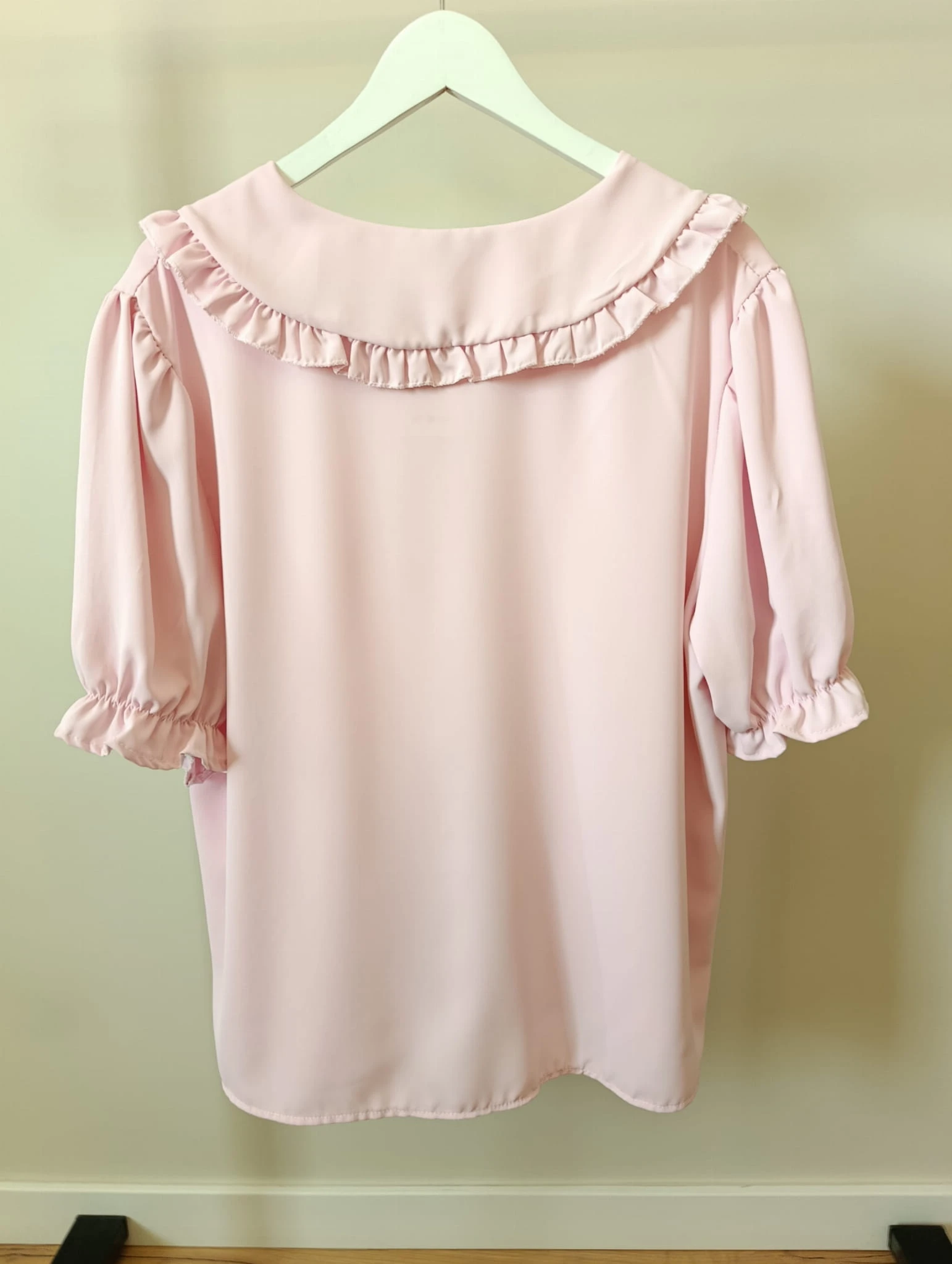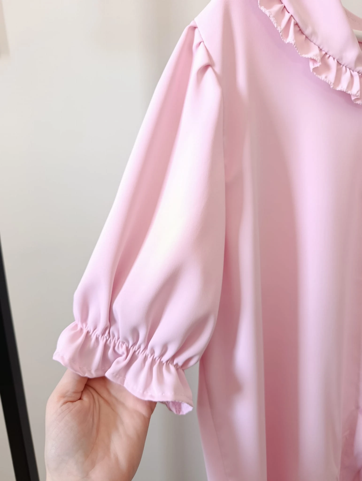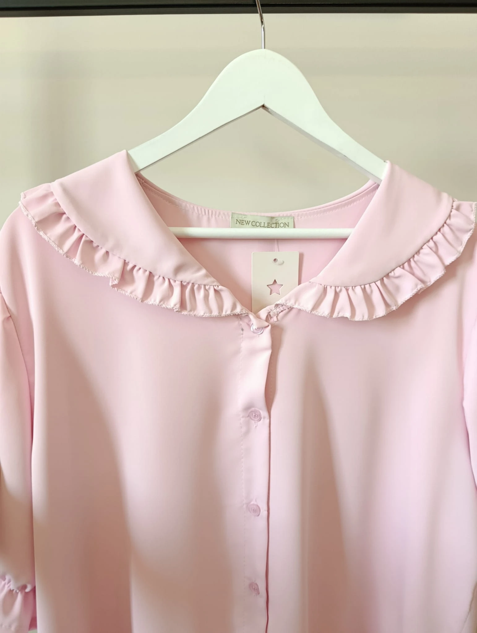 Różowa koszula damska o lekkim, lejącym fasonie, wykonana z przyjemnej w dotyku wiskozy. Model zapinany na guziki, z kołnierzykiem bebe, który dodaje elegancji i uniwersalnego charakteru. Krótkie rękawy o wydłużonym kroju z delikatnym, bufiastym wykończeniem nadają całości subtelnej objętości i kobiecego uroku.