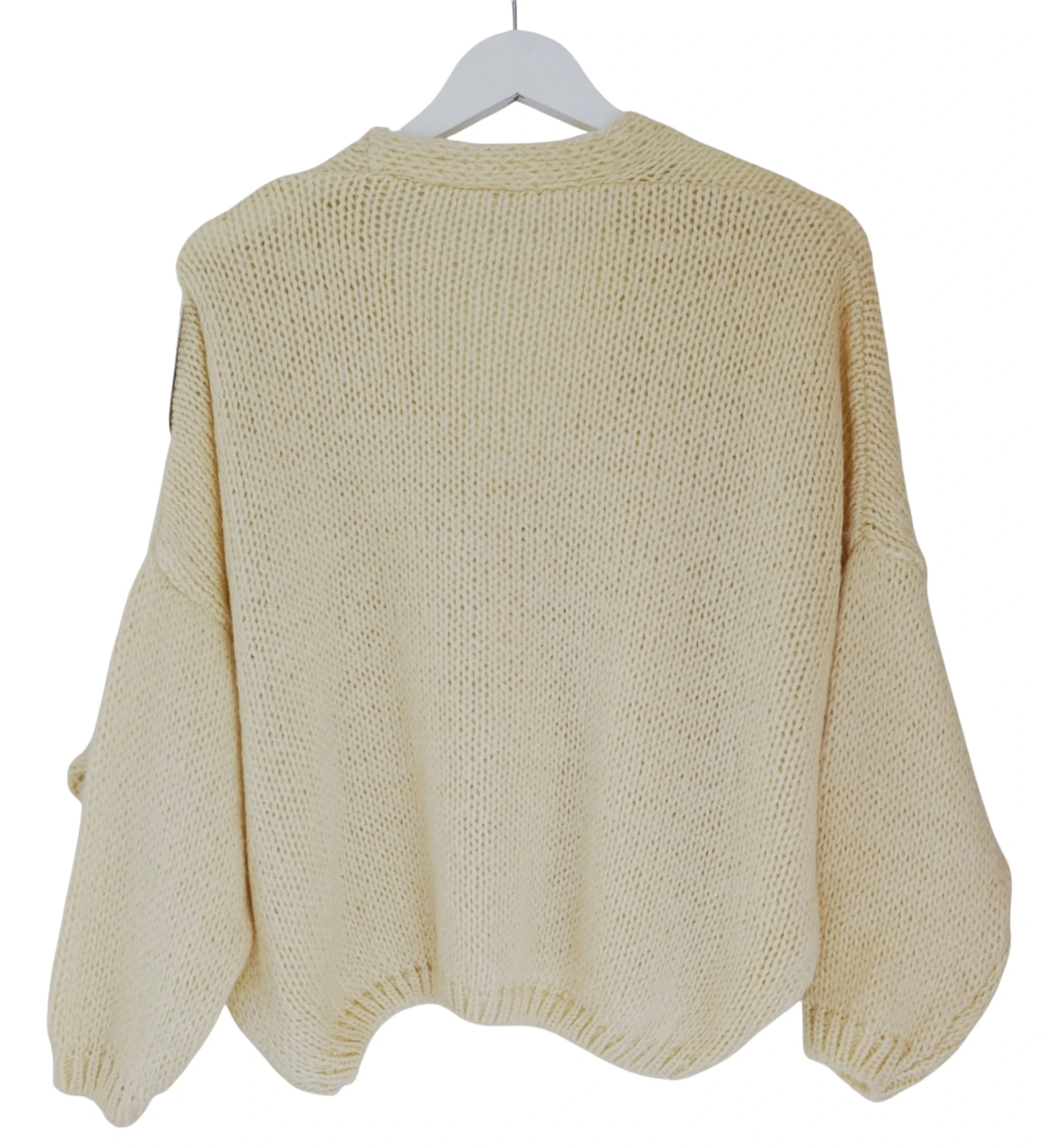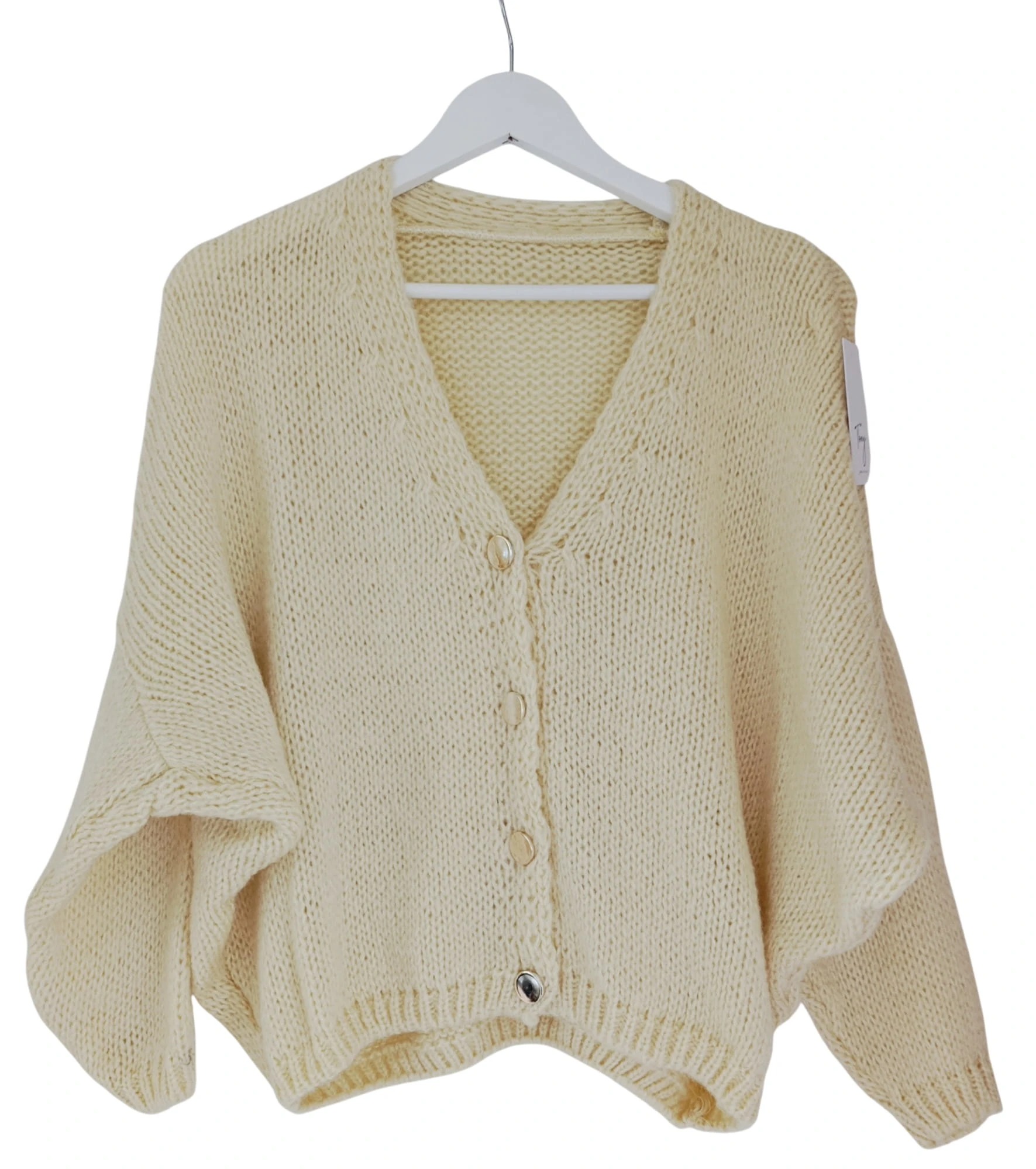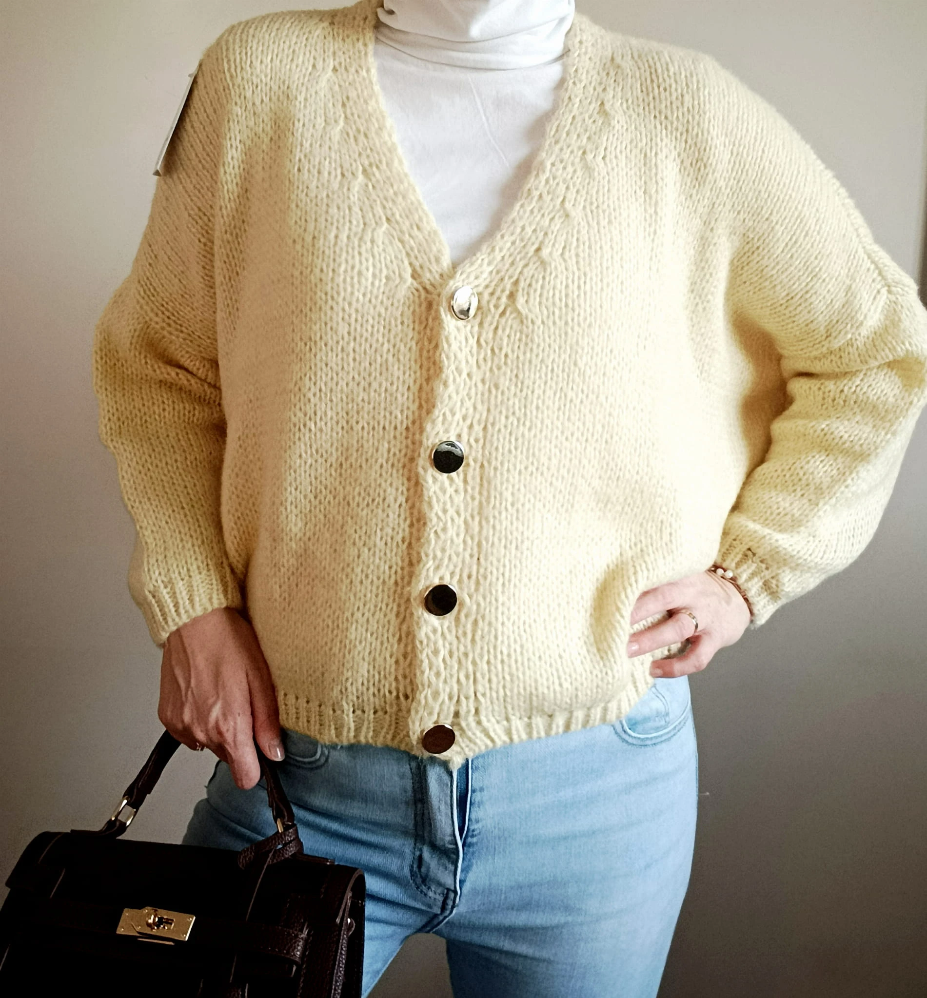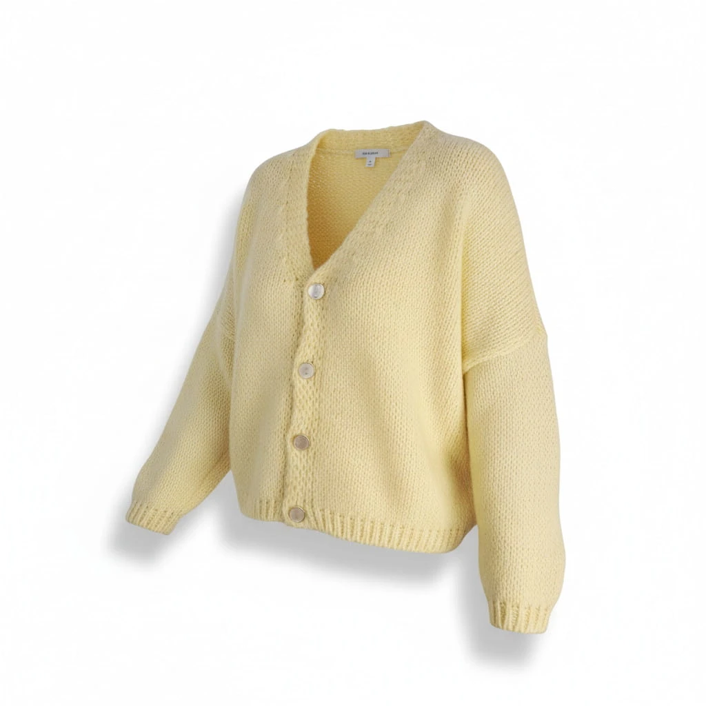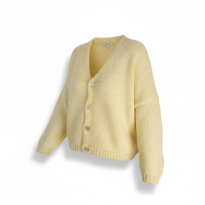 Rozpinany kardigan damski bananowy ze zotymi guzikami wygodny oversize