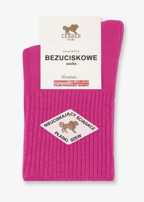 Skarpetki damskie bezuciskowe fuksja Cerber