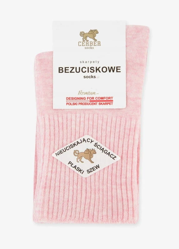 Skarpety damskie bezuciskowe pudrowy róż Cerber