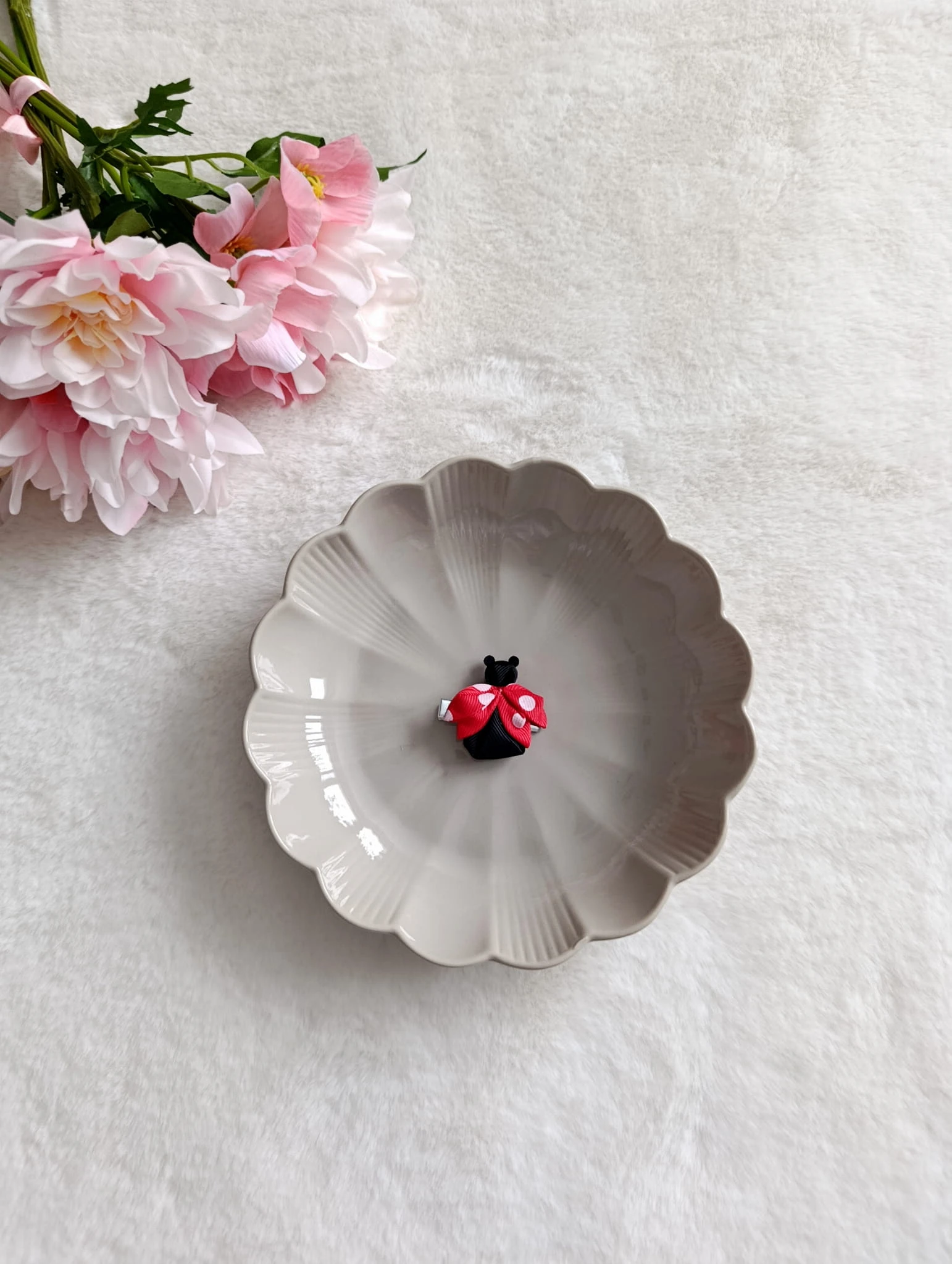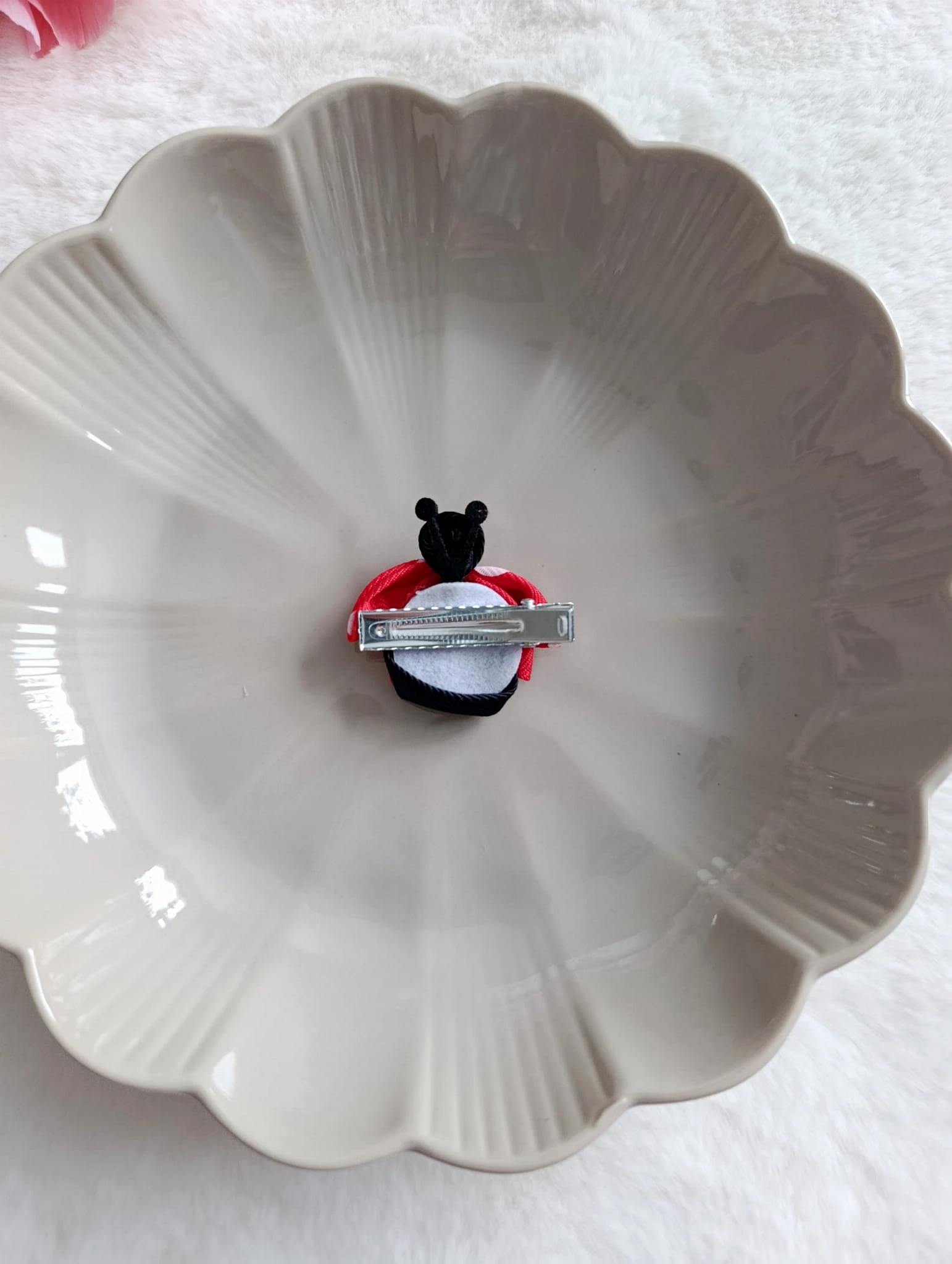 Urocza spinka do włosów w kształcie biedronki to idealny dodatek dla małej miłośniczki przyrody i kolorowych akcentów.
