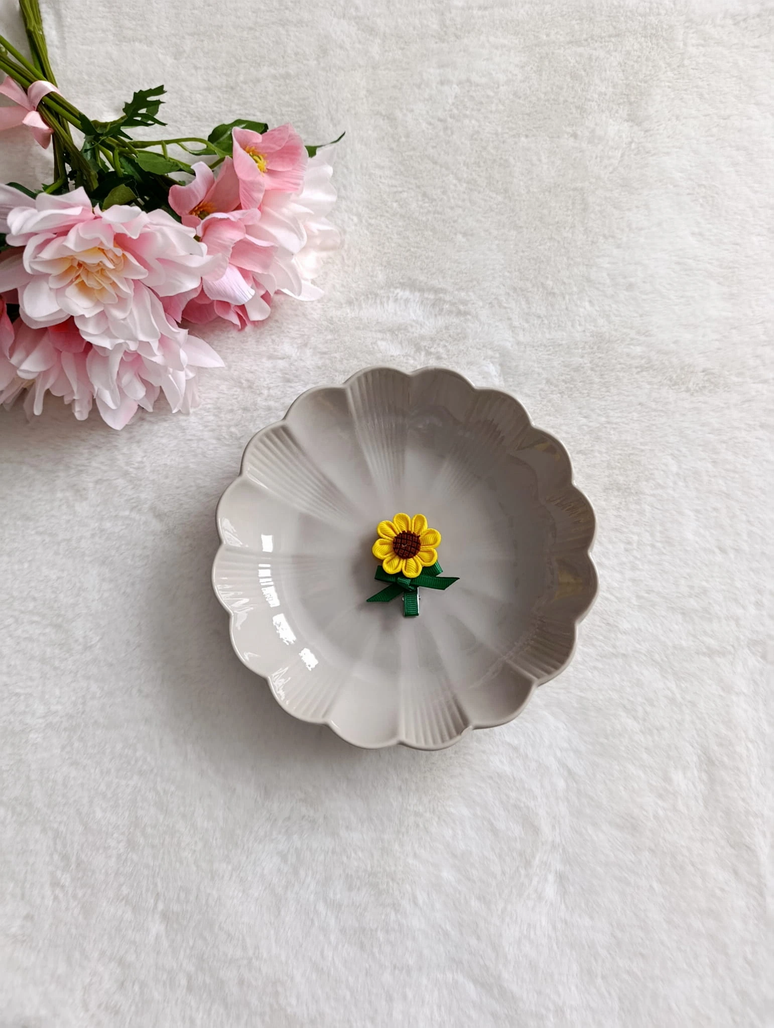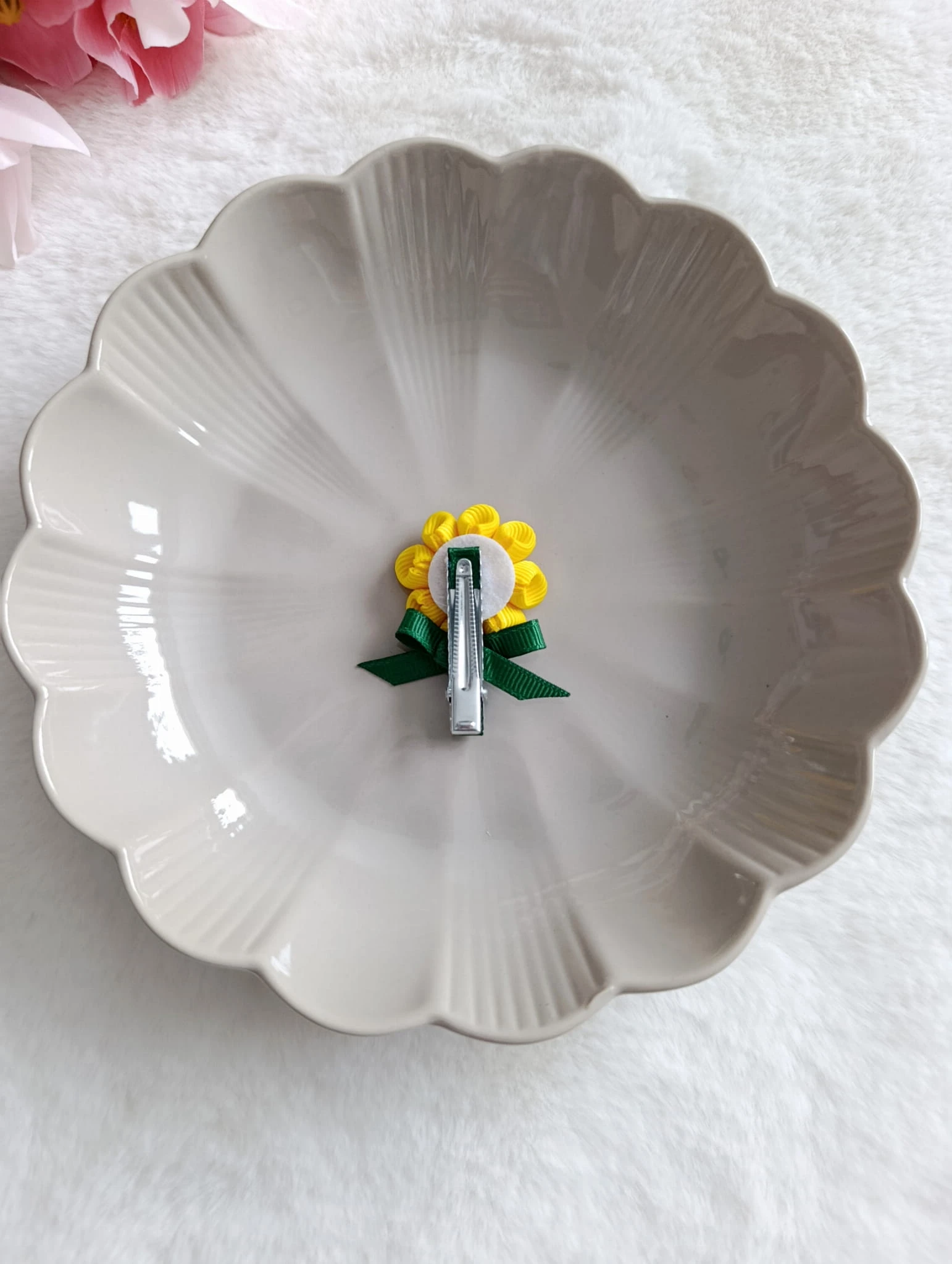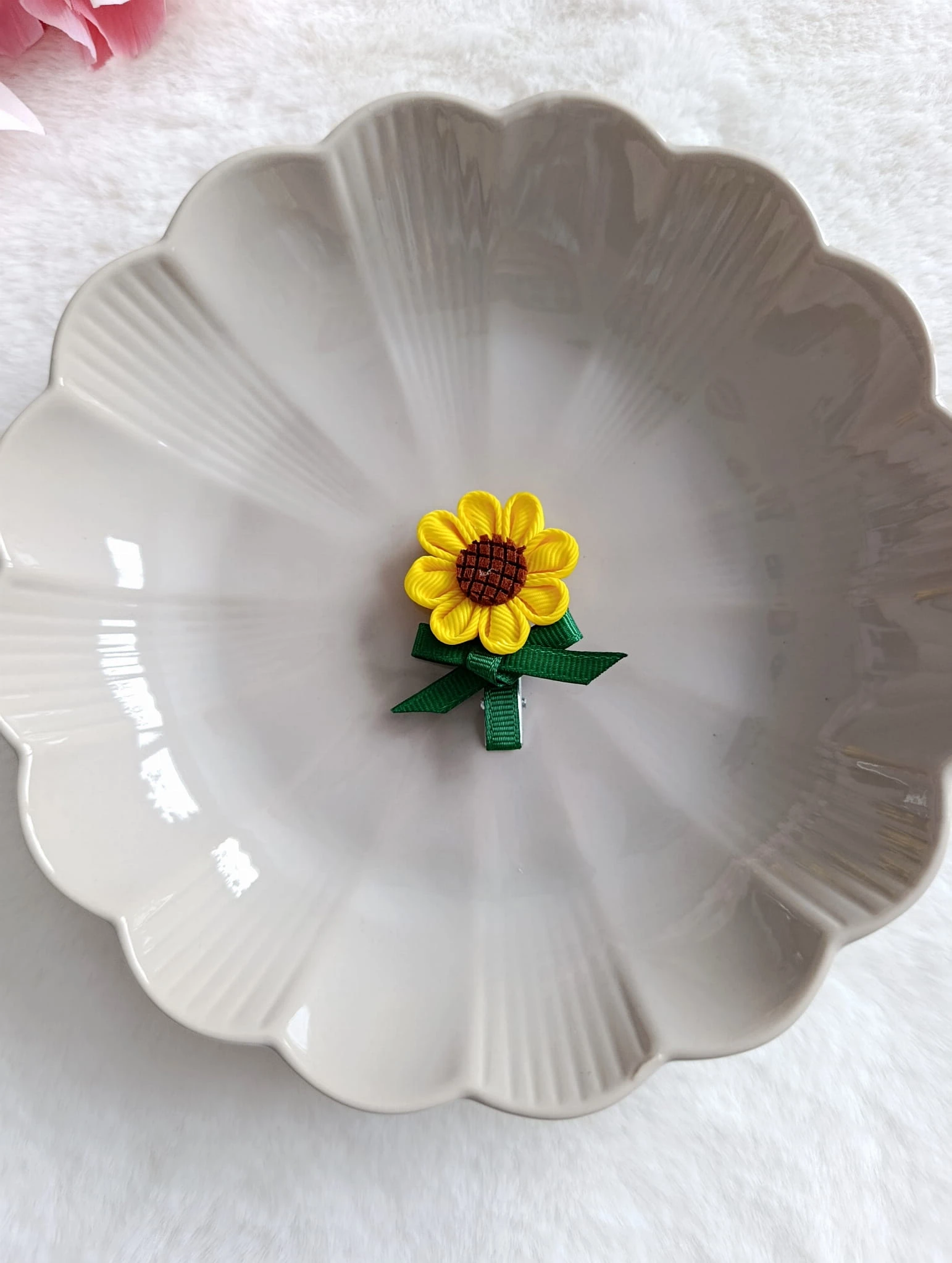 Urocza spinka do włosów w kształcie słonecznika to idealny dodatek dla małej miłośniczki przyrody i kolorowych akcentów.