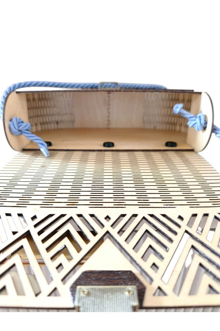 Torebka damska wykonana ręcznie z najwyższą starannością z ekologicznej sklejki o grubości 3mm to wyjątkowe połączenie natury, designu i rzemiosła DIY. Każdy egzemplarz powstaje w procesie ręcznej pracy, co nadaje mu unikalny charakter i niepowtarzalność.