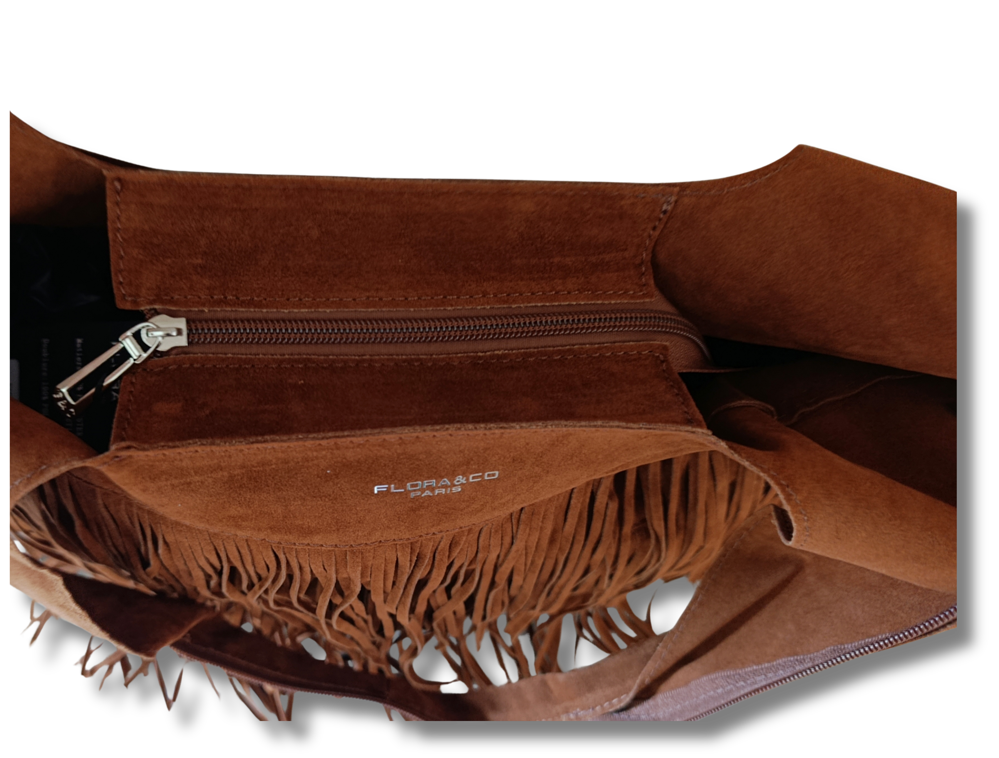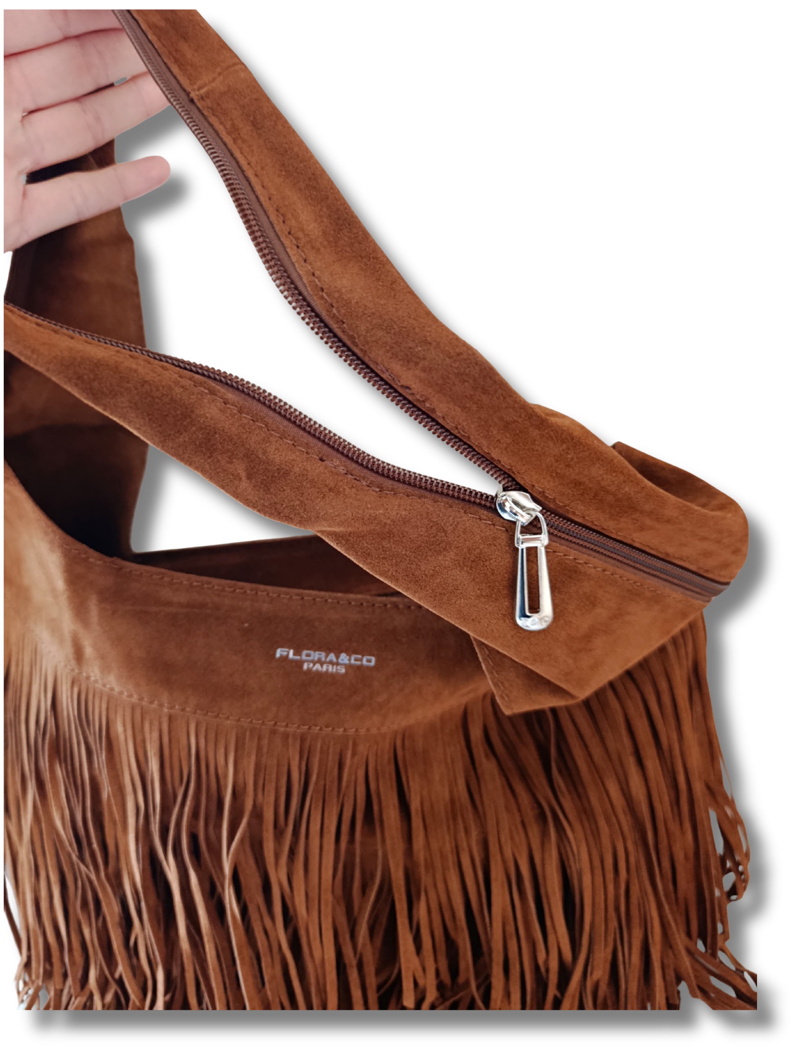 - przód zdobią dwa rzędy dekoracyjnych frędzli, które nadają torebce lekkości i boho charakteru,