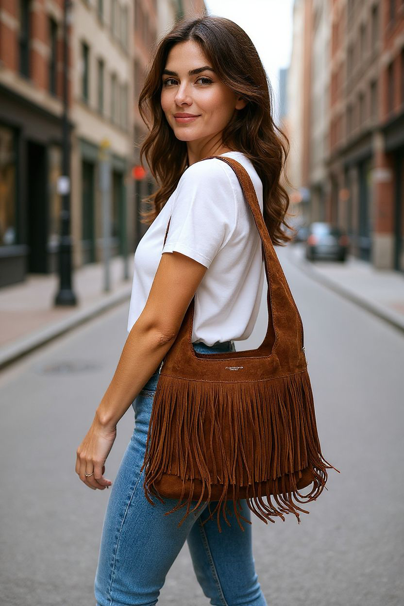 Torebka damska hobo z zamszu - styl i wygoda w jednym camel