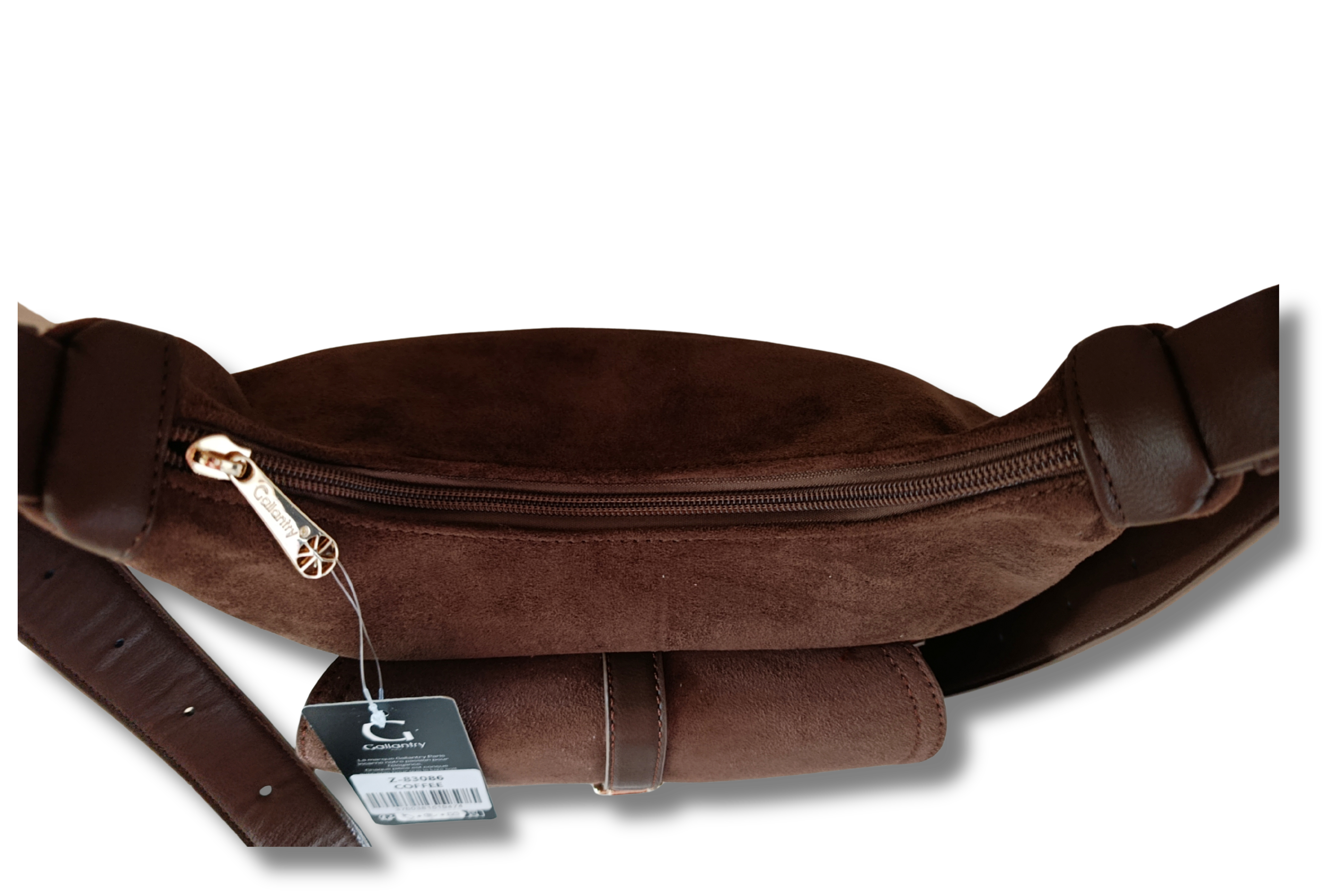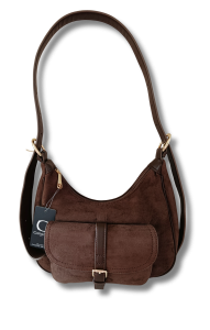 Torebka damska zamszowa coffee na szerokim pasku