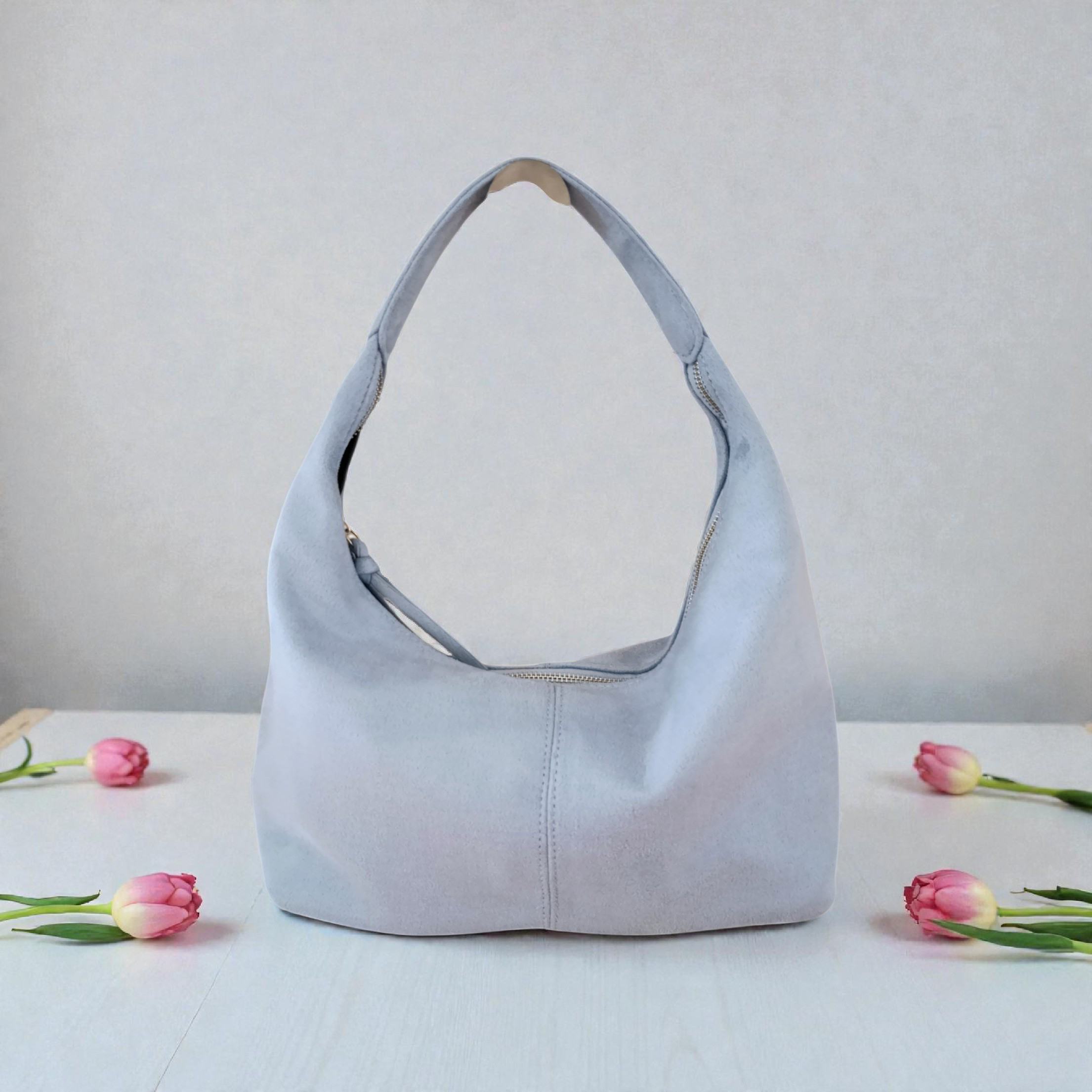 Torebka damska zamszowa na ramię błękitna