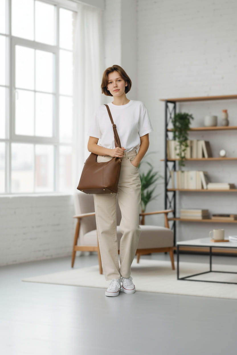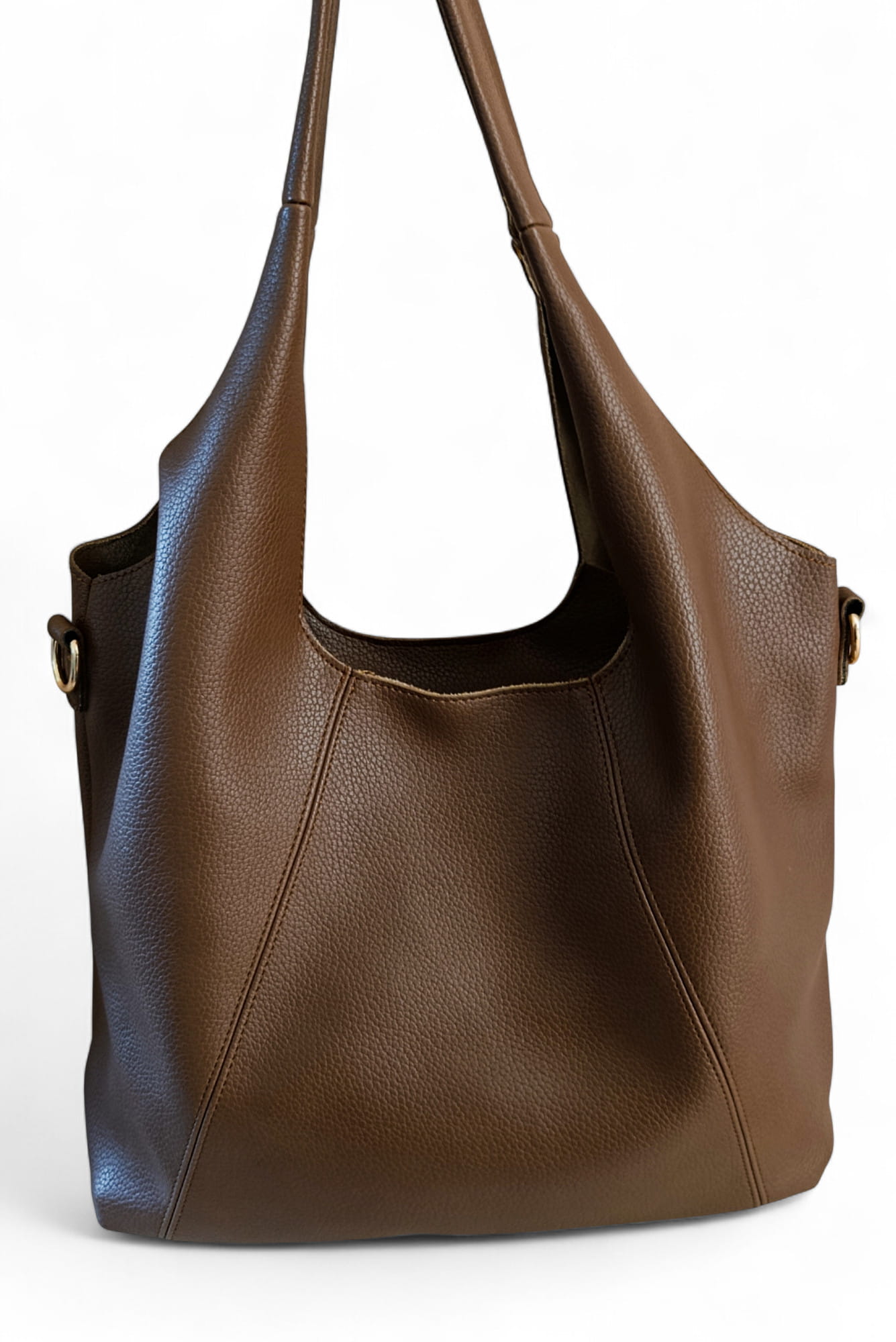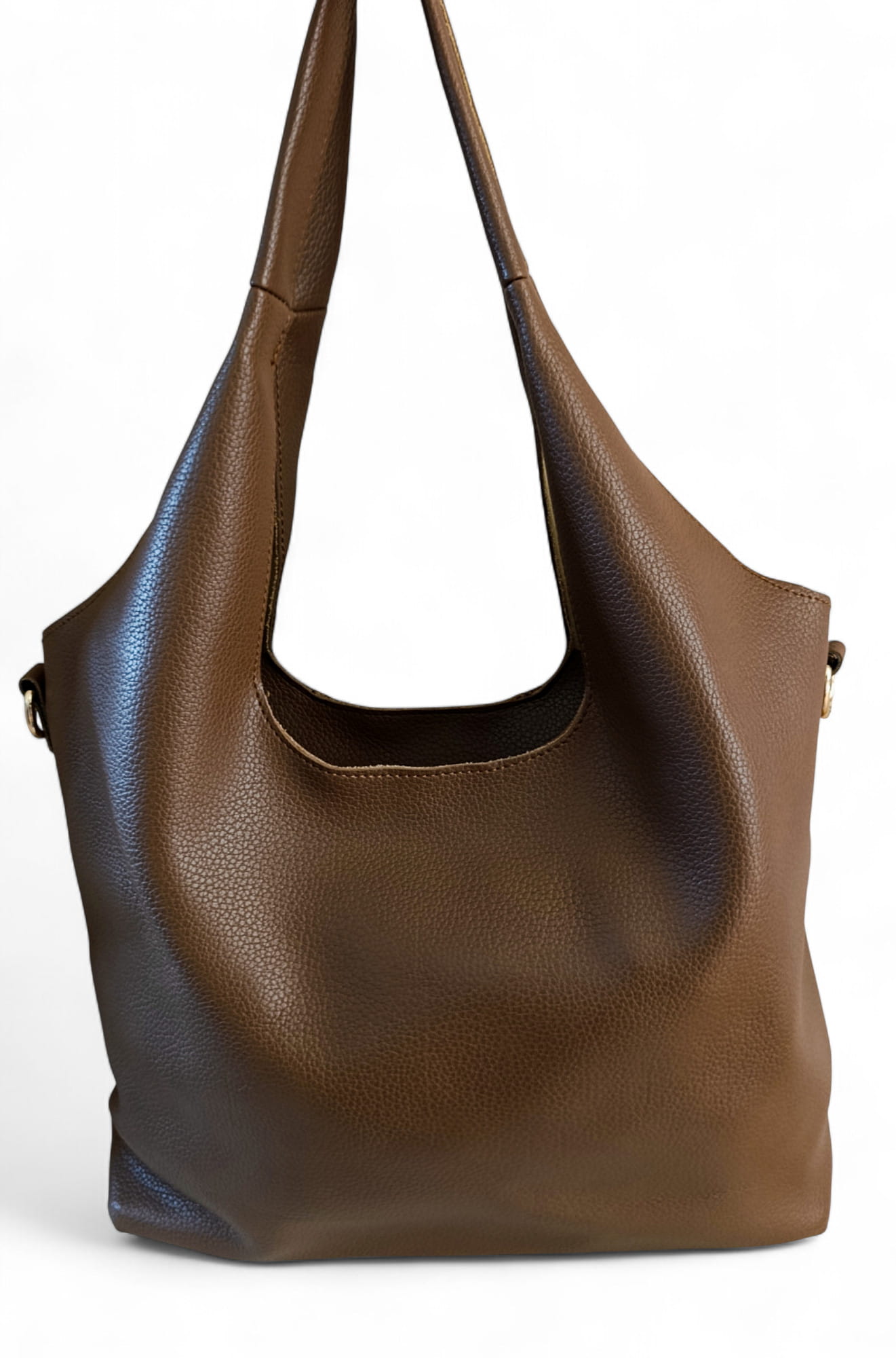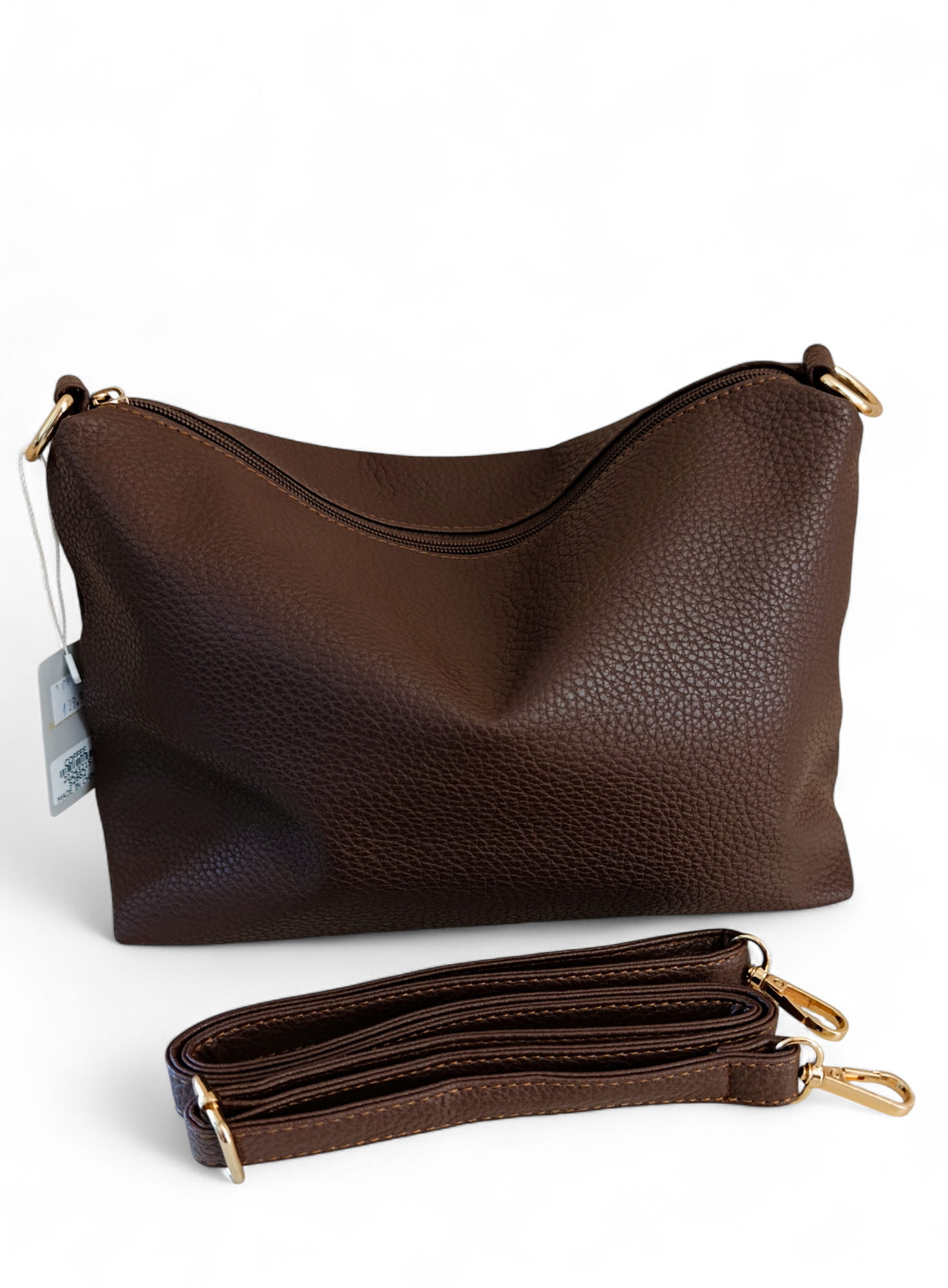 Model wyróżnia się dużą pojemnością i wygodą użytkowania - doskonały na co dzień, do pracy czy na spotkania w mieście. W zestawie znajduje się praktyczna kosmetyczka w kolorze czekolady oraz regulowany pasek, który pozwala nosić torebkę zarówno w dłoni, na ramieniu, jak i crossbody.