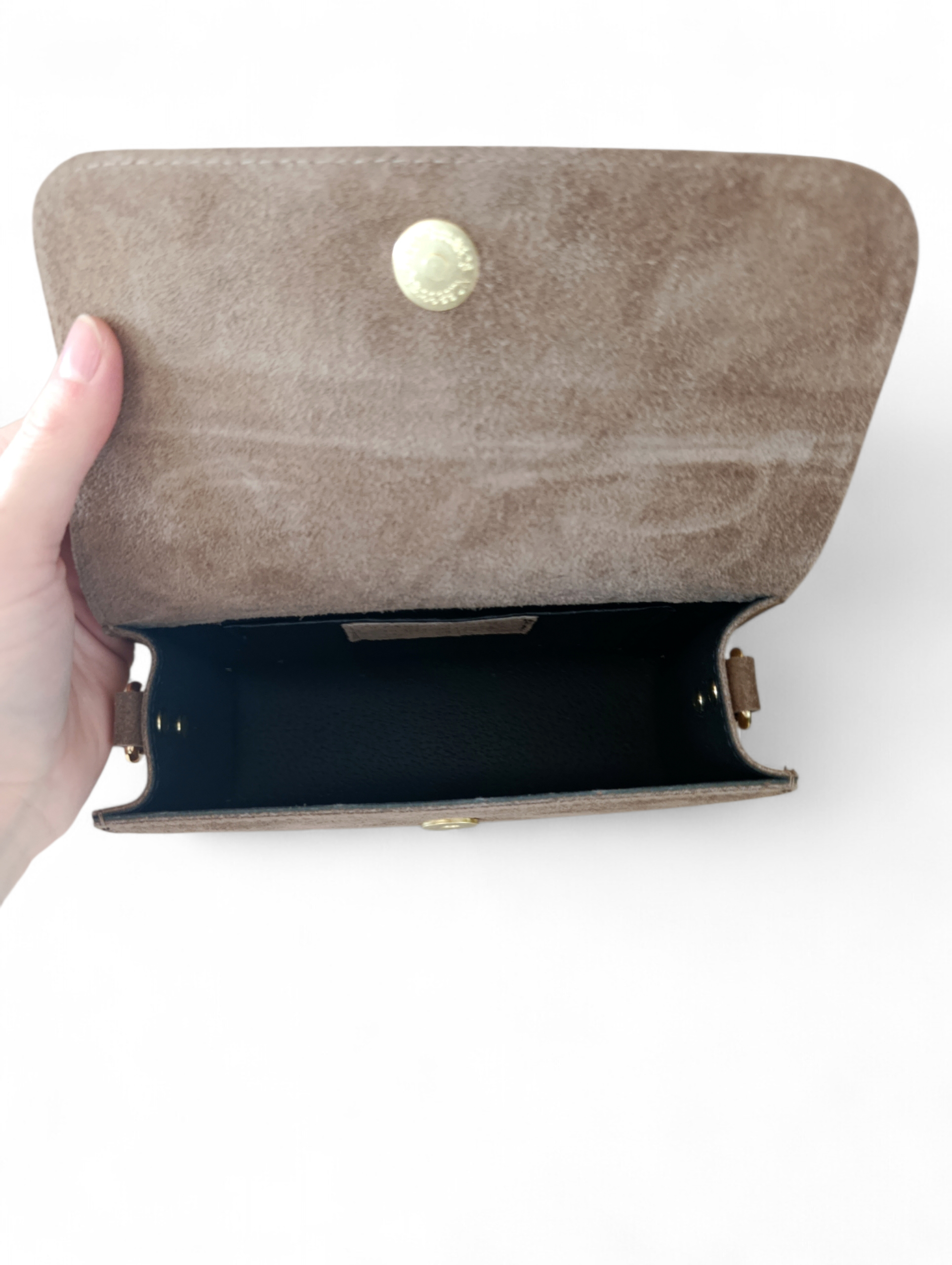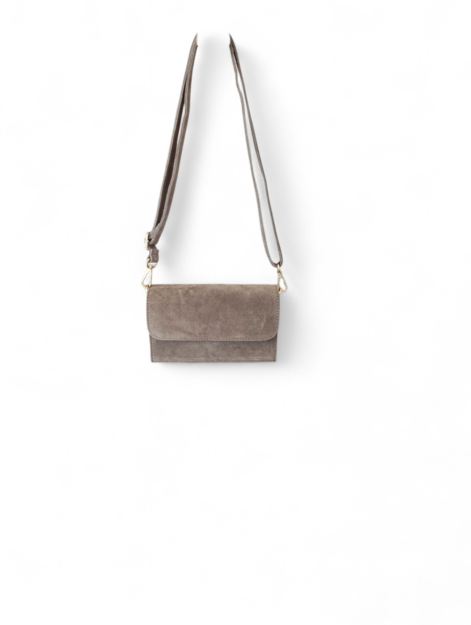 Torebka została wykonana z wysokogatunkowej skóry naturalnej zamszowej, miękkiej w dotyku i pięknie układającej się w dłoni. Kolor taupe (elegancki odcień beżowo-szary) jest niezwykle uniwersalny - pasuje do czerni, bieli, beży i pastelowych stylizacji.