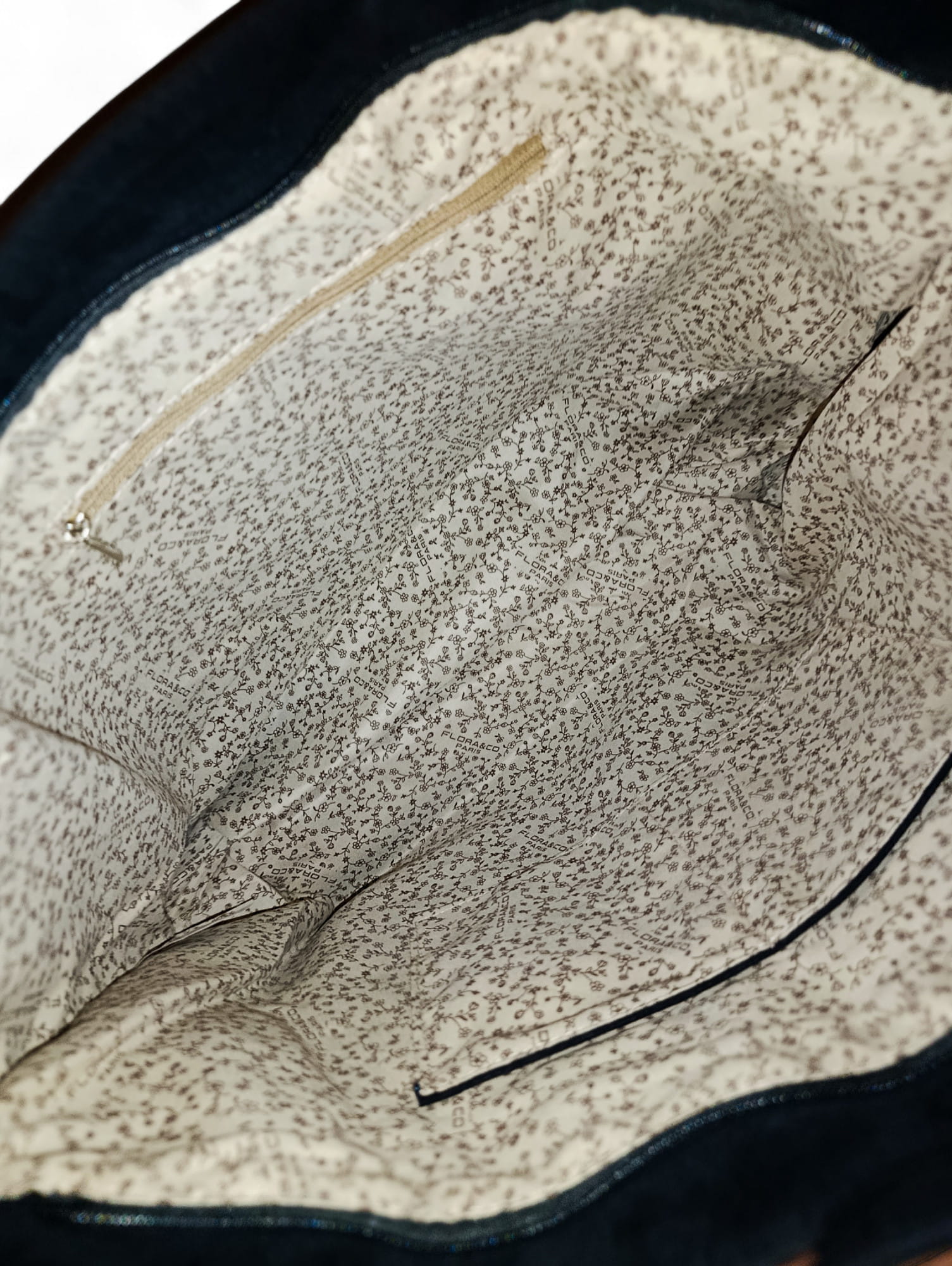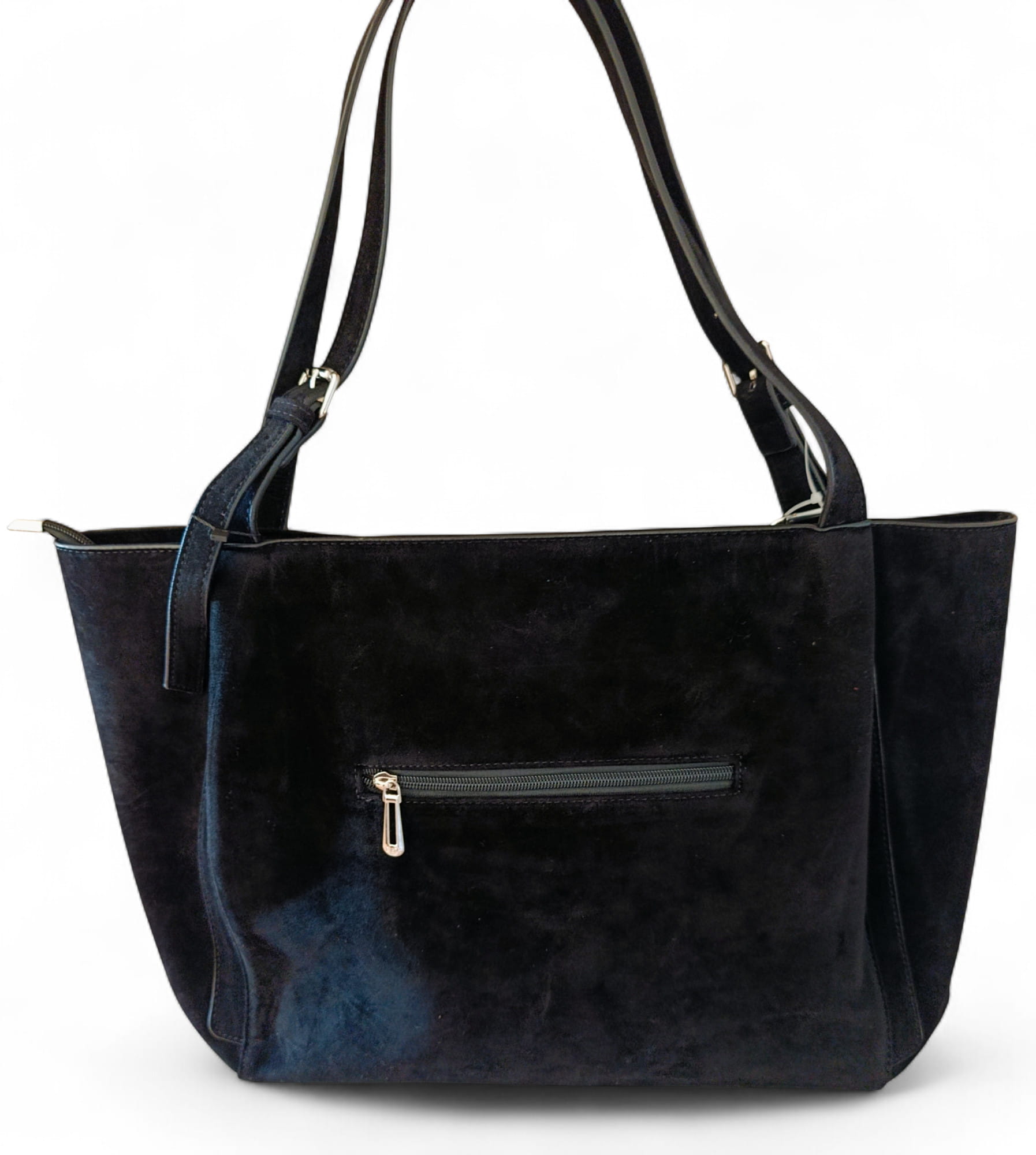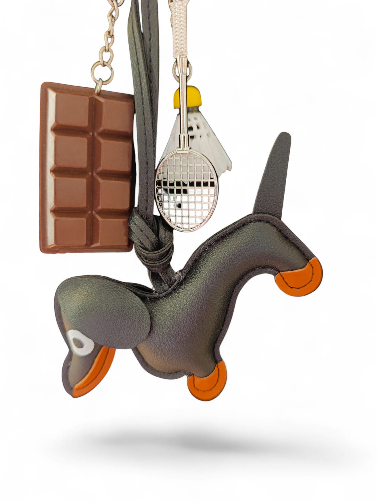 Pojemna torebka damska z dużą komorą oraz dodatkowymi kieszonkami, zamykana na zamek błyskawiczny. Paski regulowane, środek wyściełany pięknym i miękkim materiałem w kwiatki. Do torebki dołączone zostały breloki, które uzupełniają całą stylizację (piesek, tabliczka czekolady oraz paletka z lotką).