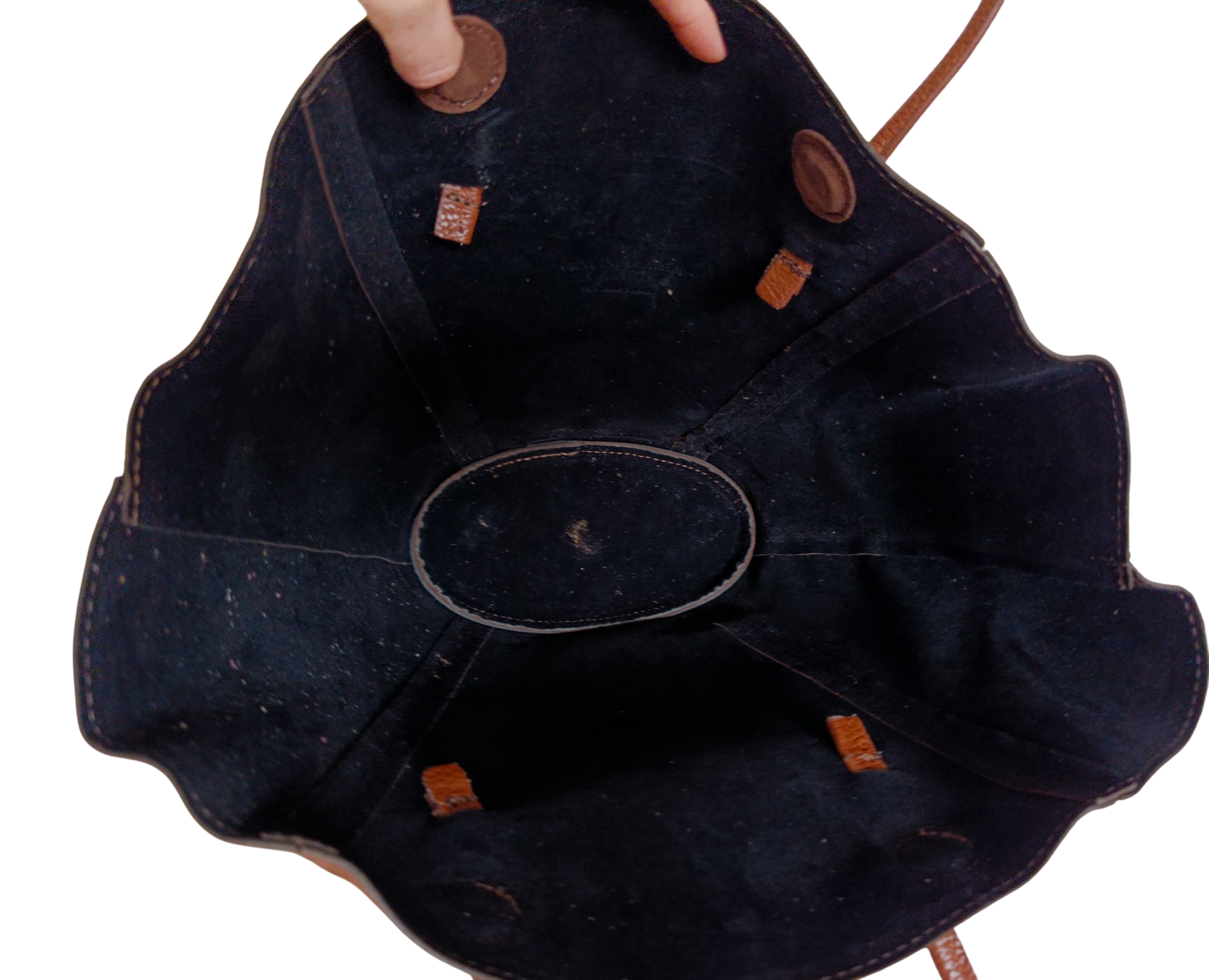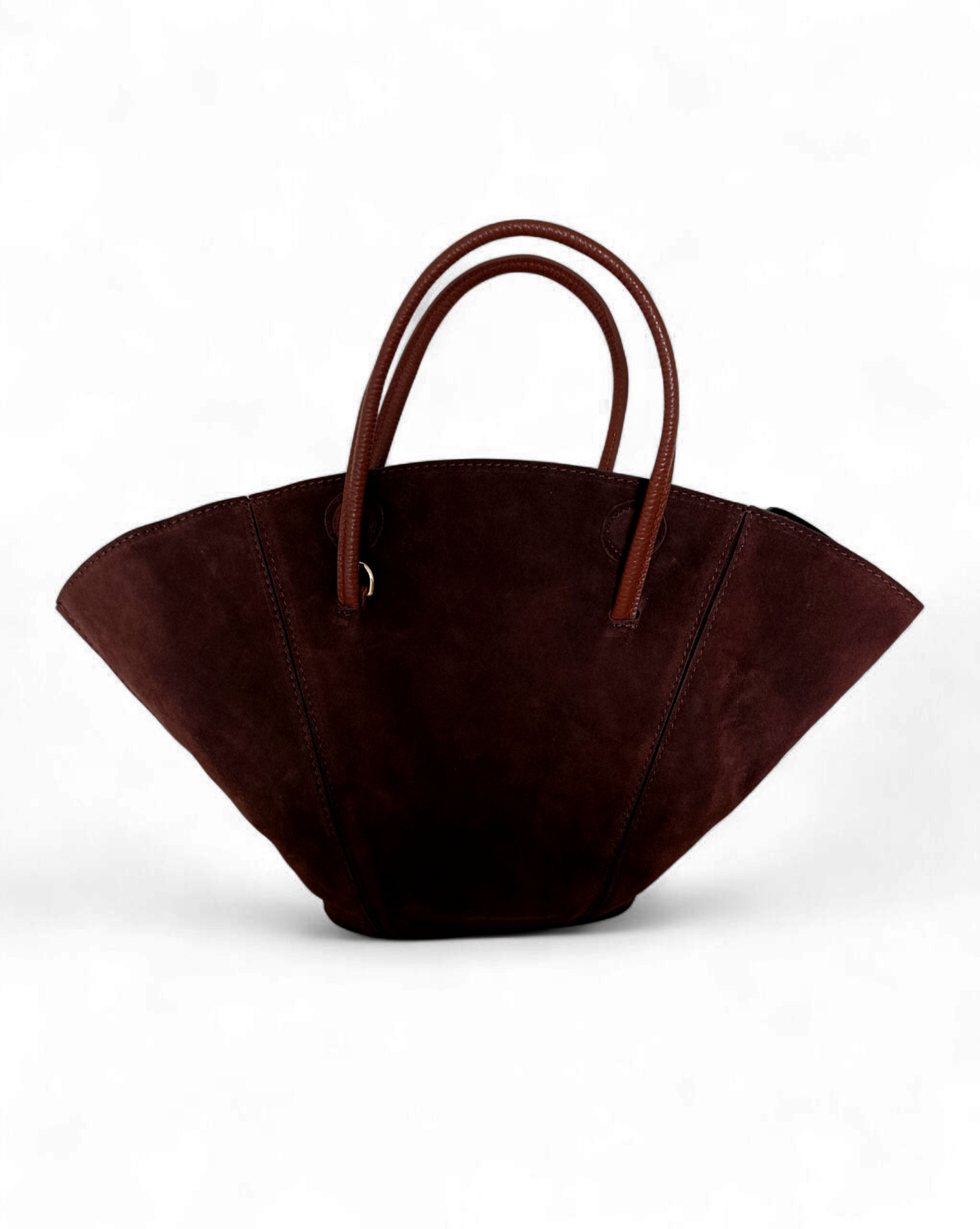 Torebka "muszelka" marki The Genuine Leather to elegancka i funkcjonalna damska shopper bag wykonana z wysokiej jakości naturalnej skóry zamszowej. Model w modnym kolorze coffee wyróżnia się miękką linią i kształtem przypominającym muszlę, co nadaje mu wyjątkowy, kobiecy charakter.