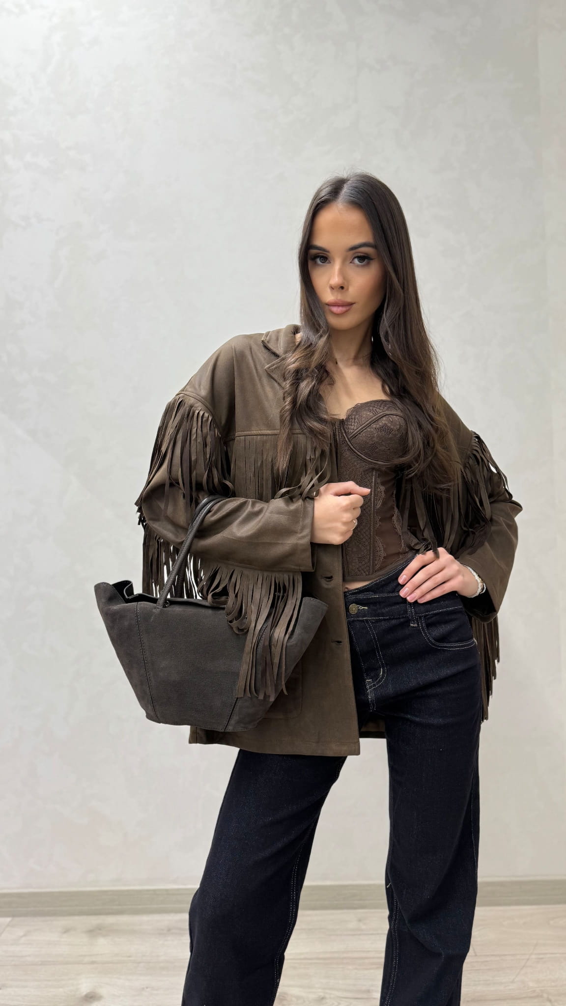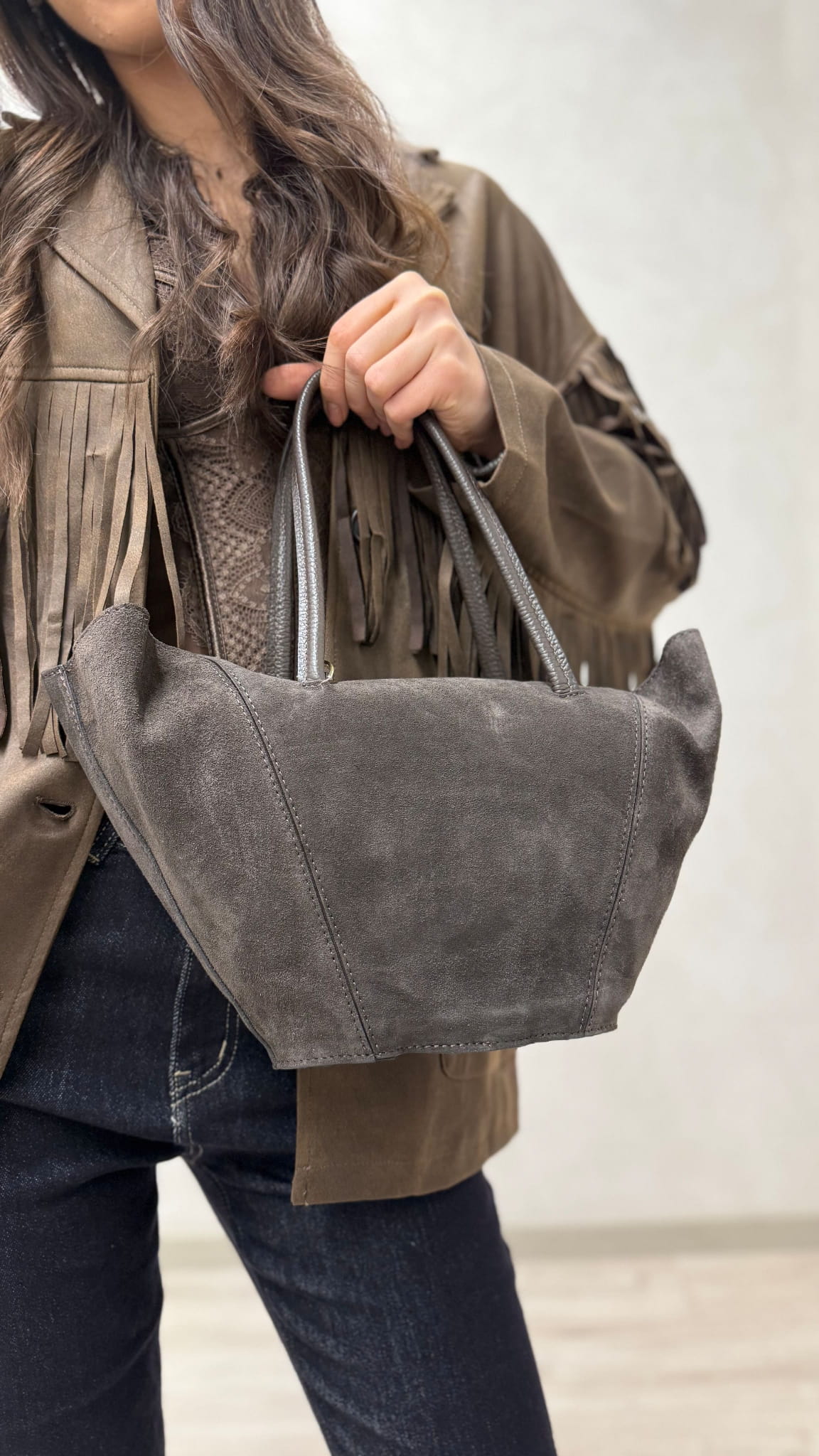 Torebka zamszowa muszelka pojemna shopper bag coffee
