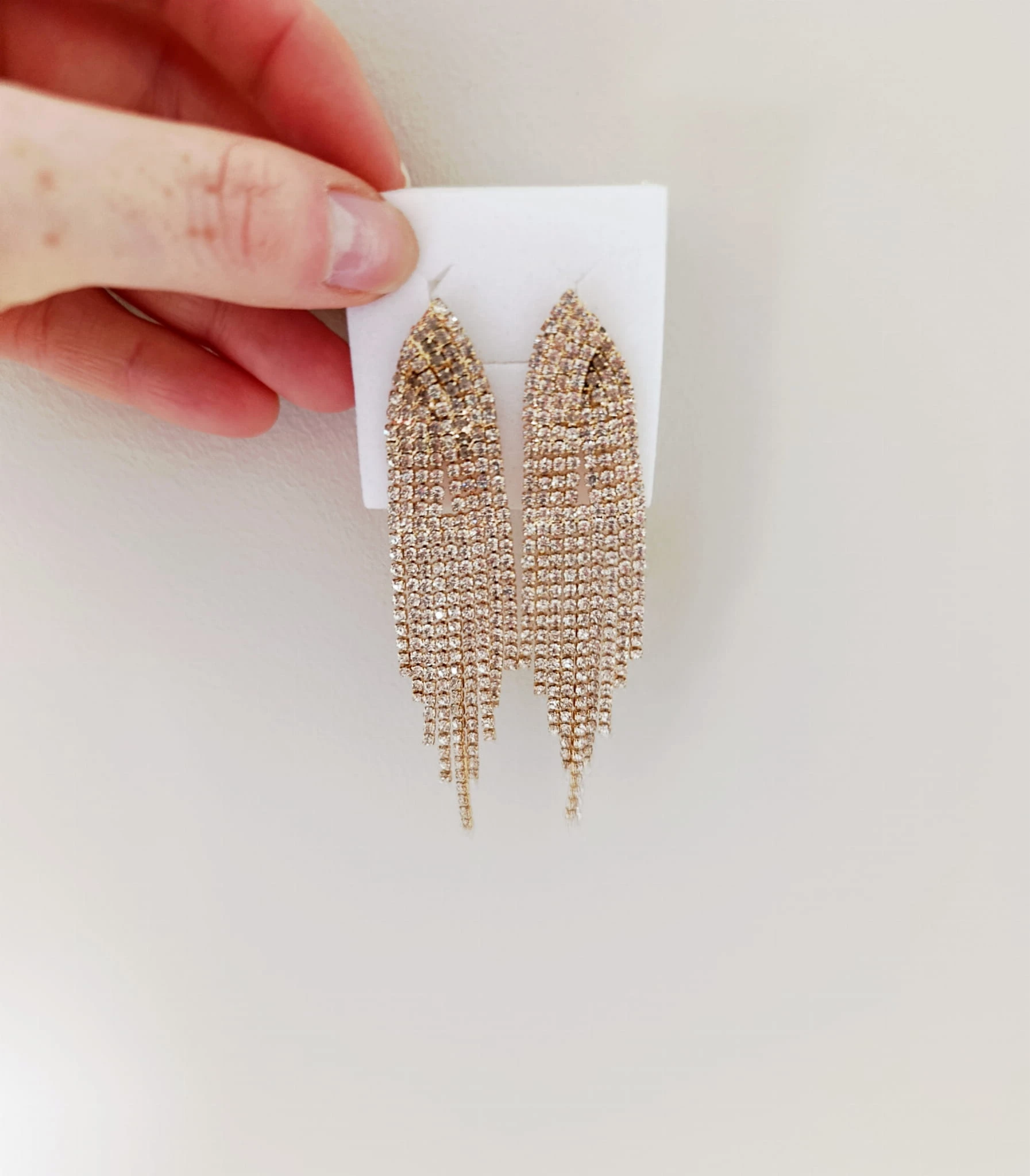 Górna część ma kształt subtelnego owalu, natomiast dół tworzą delikatnie poruszające się łańcuszki, które efektownie podkreślają ruch i wysmuklają szyję.